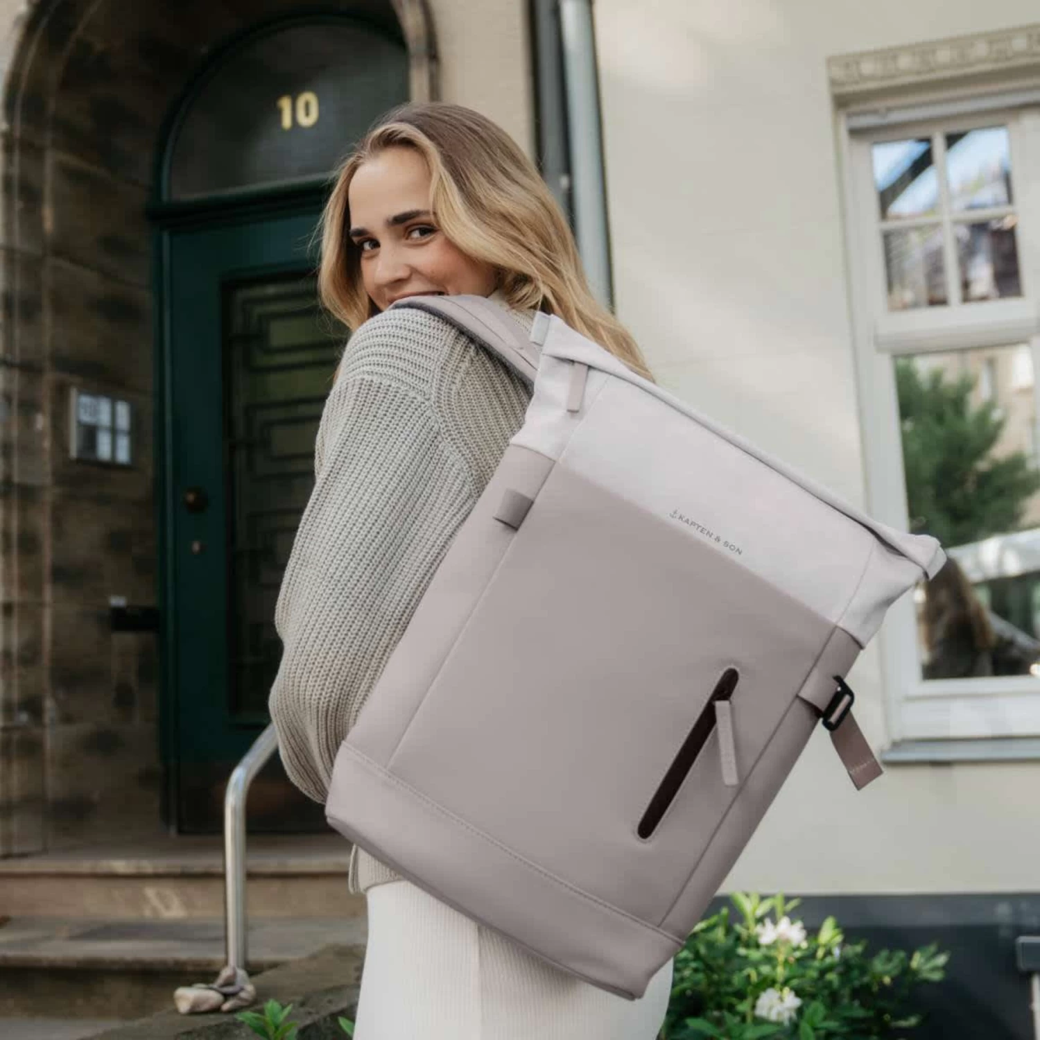 Unsere Rucksäcke komplettieren jedes deiner Outfits – versprochen! Beweisstück A: Der Aarhus in Muted Clay bringt deinen Look auf ein völlig neues Level. Unser All Time Favourite wird mit dieser modernen Farbgebung zu einem absoluten Schmuckstück. Helles Rosébraun und cleanes Cremeweiß verschmelzen mit jedem deiner Styles. Das geradlinige Design aus fein strukturiertem veganem Tech-Material sorgt für den einzigartigen modernen Minimalismus und auch in Sachen Funktionalität lässt der Aarhus keine Wünsche offen. Im gepolsterten 14″-Fach ist dein Laptop vor allen Eventualitäten geschützt. Vier weitere Innen- sowie drei Außenfächer bieten dir sowohl Stauraum als auch Ordnung, damit du immer den Überblick behältst. Mit einem Volumen von insgesamt 14 Litern hast du alles dabei, was du brauchst. Der Aarhus ist dein praktischer und lässiger Begleiter – ganz egal, wohin es geht: ob in die Stadt, ins Büro, an den Strand, in die Berge oder zum Wocheneinkauf.
