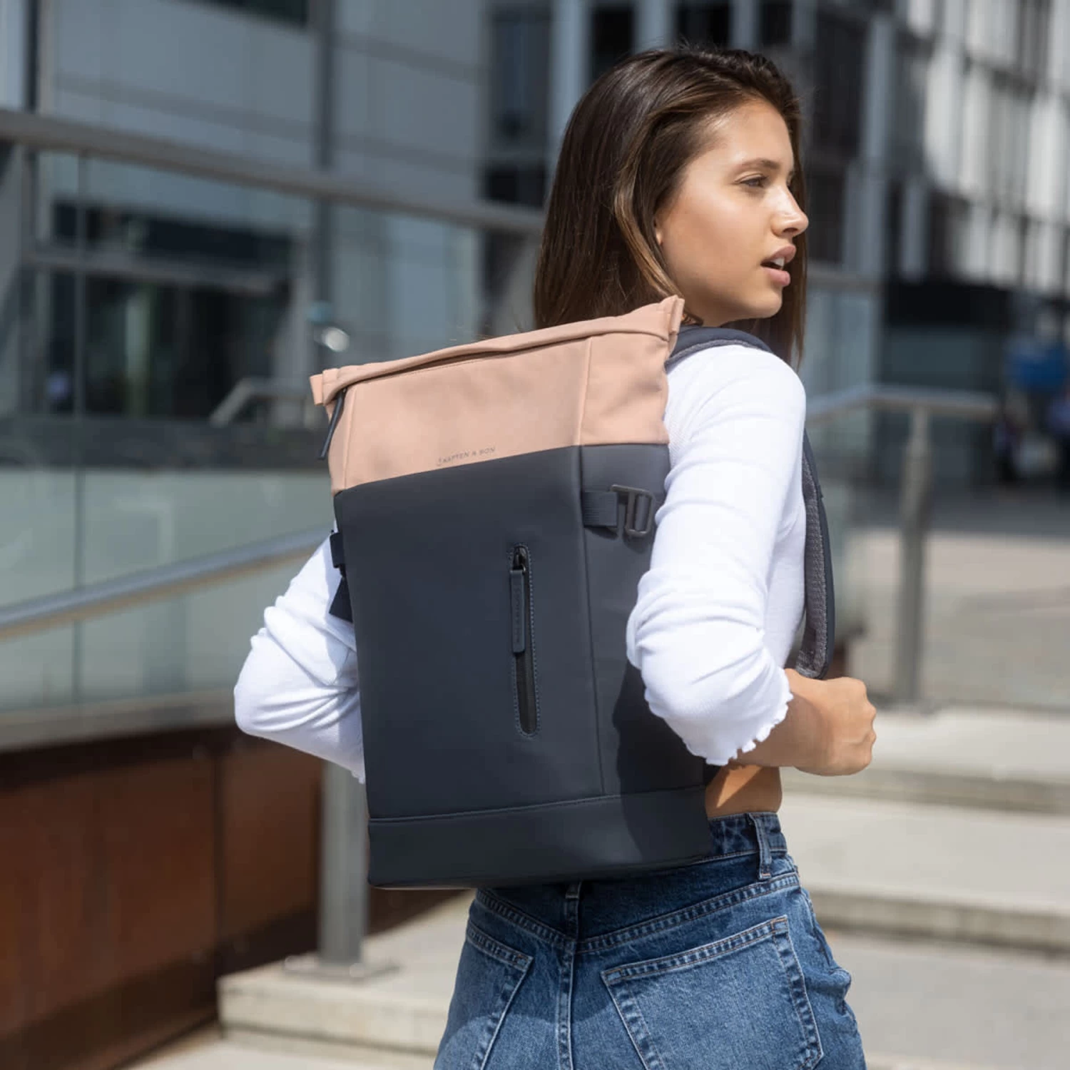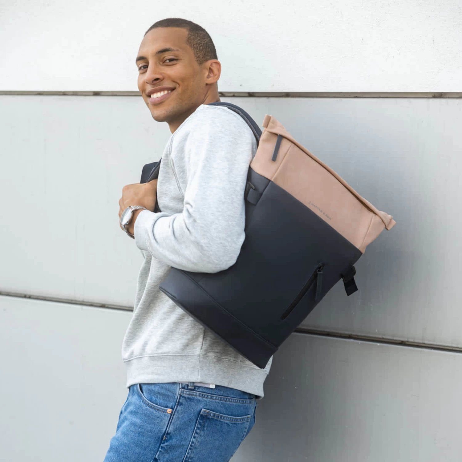 Modernes Design und stylische Farbgebung kombiniert mit praktischer Funktionalität – dĂĽrfen wir vorstellen: unser Rucksack Aarhus Navy Blush! Dabei punktet dieses Modell optisch zum einen mit seiner kontrastreichen Farbgebung in dunklem Blau und zartem Rosa, sowie mit seinem geradlinigen Schnitt. Gefertigt aus einem wasserabweisenden Material-Mix aus veganem Tech-Material und recyceltem PET lassen sich kleine Gebrauchsspuren des Alltags ganz einfach entfernen – so kannst du lange Zeit Freude an dem individuellen Look deines Rucksackes haben! DarĂĽber hinaus bietet der Aarhus ausreichend Stauraum, um kleine und auch größere Utensilien, wie UnibĂĽcher, DINA4 Blöcke, Trinkflasche oder Sportbekleidung ideal zu verstauen – sogar ein bis zu 14 Zoll groĂźer Laptop findet in dem extra gepolsterten Notebook-Fach seinen Platz. Mit seinen insgesamt vier Innen- und drei AuĂźenfächern lässt sich zudem ganz leicht Ordnung halten und lästiges Rucksack-Chaos kann problemlos vermieden werden. Du suchst einen Rucksack der Extraklasse? Dann ist unser Aarhus Navy Blush genau der perfekte Begleiter fĂĽr dich – egal ob im Alltag oder auf Reisen!