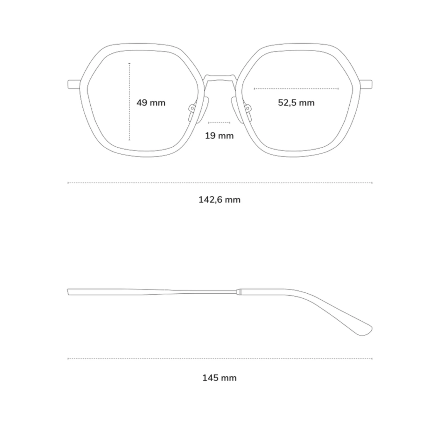 - Rahmenbreite: 142,6mm, Bügellänge: 145mm, Glasbreite: 52,5mm, Glashöhe: 49mm