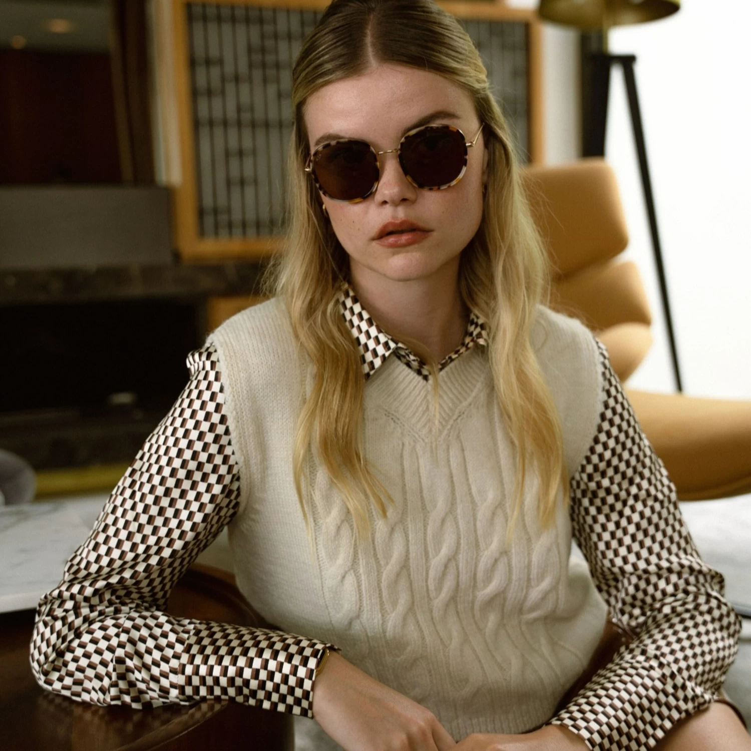 - extravagante Sonnenbrille mit Farb-Mix in warmen Erdtönen