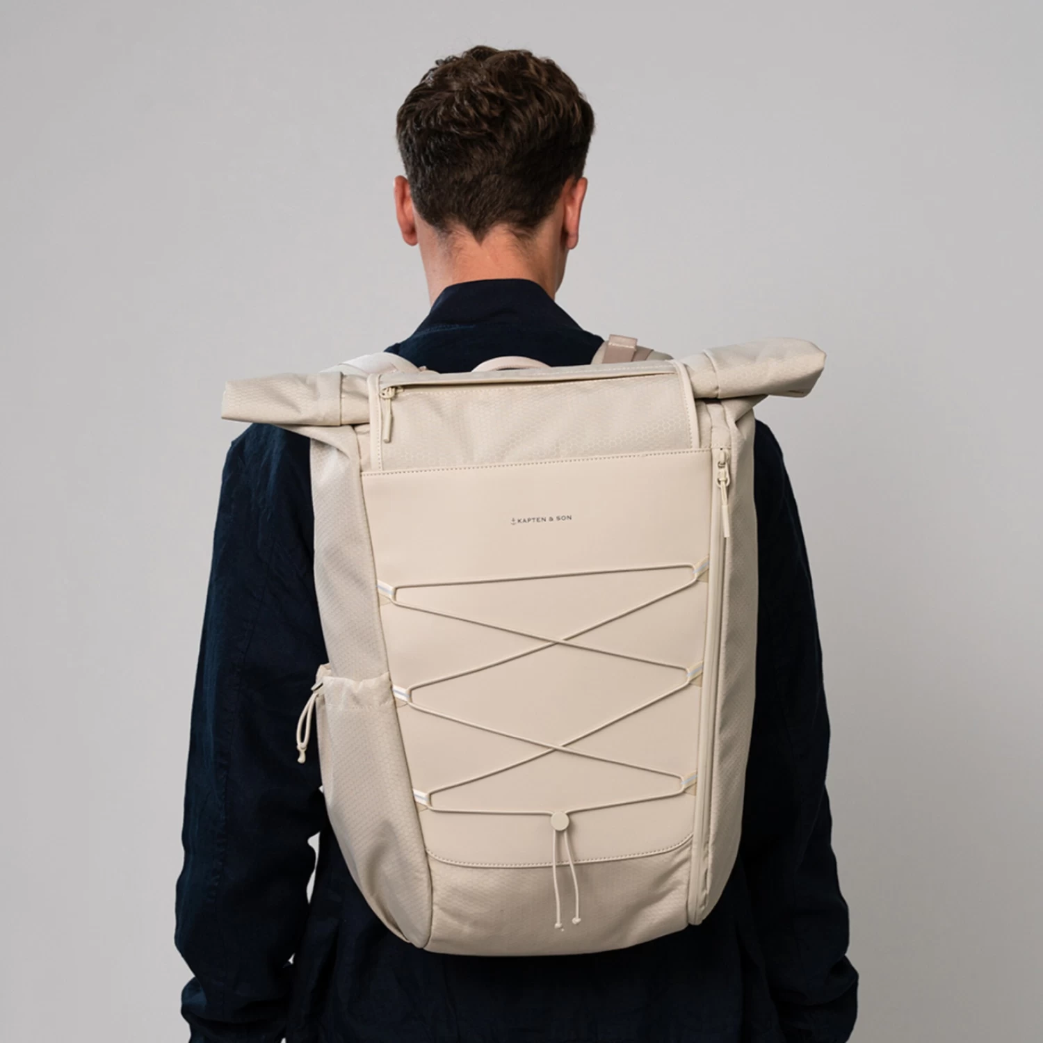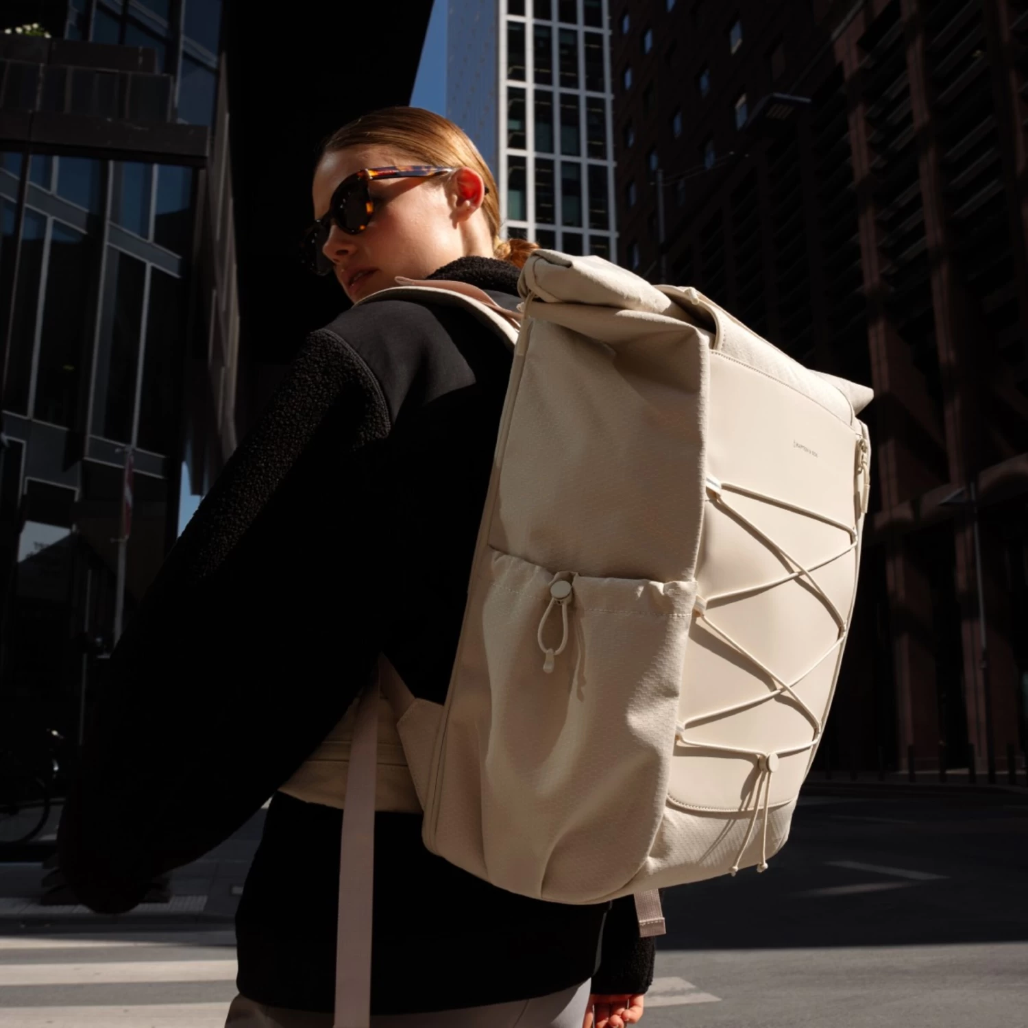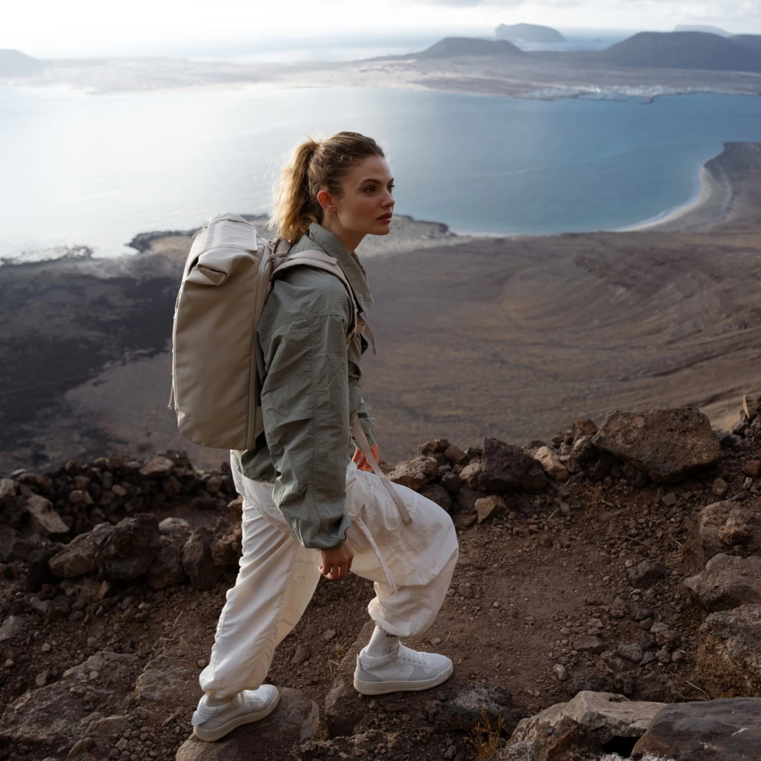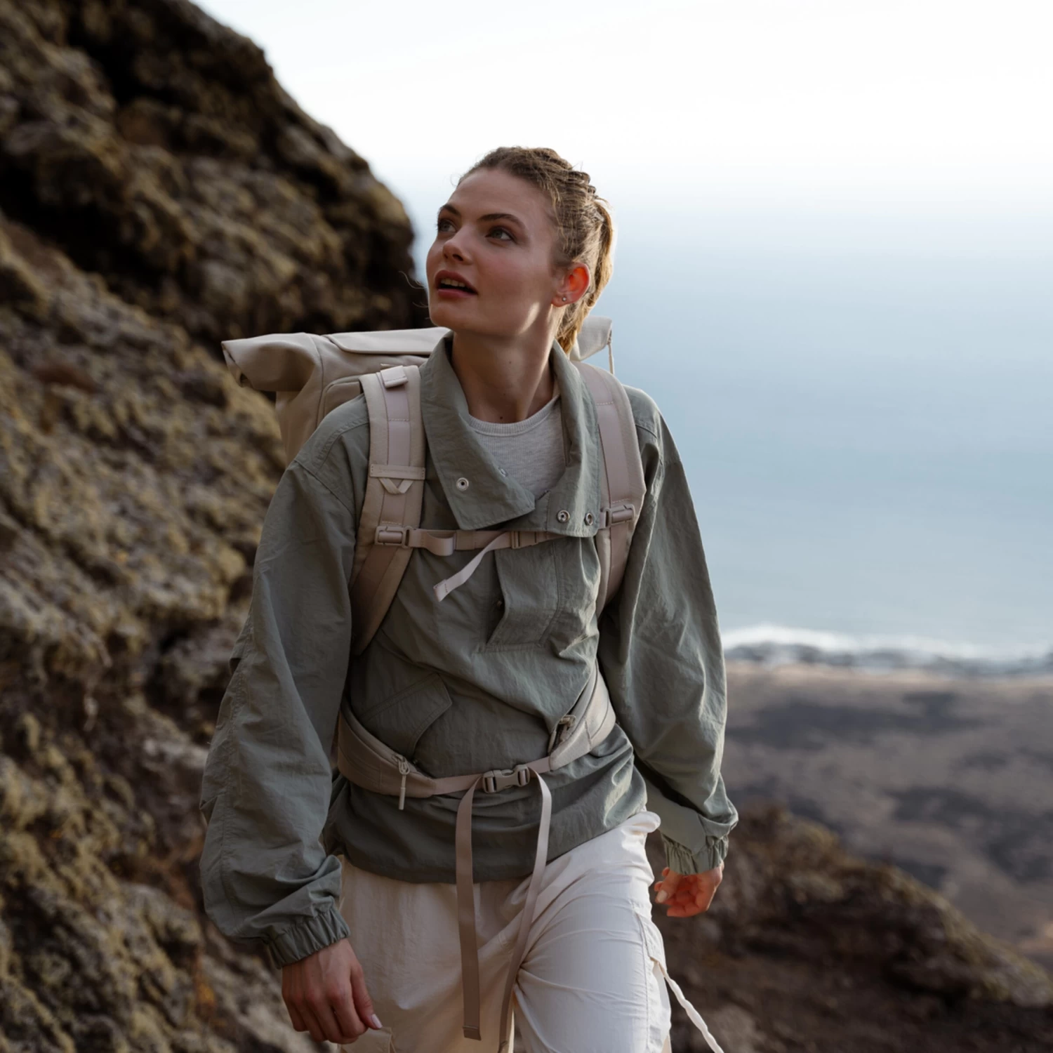 The best is yet to come: Und mit dem Banff Sandstone auf deinem Rücken bist du sowohl auf besondere Alltagsmomente als auch die ganz großen Erlebnisse vorbereitet! Der Stauraum lässt sich von 28 Liter auf bis zu 35 Liter erweitern; damit ist der Banff unser bisher größter Backpack. Dank der komplett aufklappbaren Rückseite inklusive Kofferbefestigung und vieler zusätzlicher Innen- und Außenfächer verlierst du trotzdem nie den Überblick. Die integrierten Taschen für Smartphone, Laptop und Tablet sind mit Micro Fleece ausgekleidet und so extra sicher. Seitlich befindet sich eine Flaschenhalterung sowie ein großes, separates Fach. Hier lassen sich zum Beispiel deine Schuhe verstauen. Auf der Vorderseite findest du neben der Fronttasche auch ein elastisches Band, in dem du deine Jacke einklemmen kannst. Dank des magnetischen Rolltop-Verschlusses lässt sich der Banff easy öffnen und schließen. Gleichzeitig sorgt ein Reißverschluss für zusätzliche Sicherheit. In einem weiteren versteckten Fach befindet sich übrigens ein Regenschutz, den du an nassen Tagen über deinen Banff ziehen kannst. Apropos Regen: Durch das neue Ripstop-Material ist dieser Backpack extrem wasserabweisend. Das gilt übrigens auch für die Reißverschlüsse. Um Rückenschmerzen vorzubeugen, ist der Banff mit einer speziellen Polsterung sowie Brust- und Hüftgurt ausgestattet. Der Clue: Du kannst den Hüftgurt abnehmen und als stylische Sling Bag tragen, die Platz für Essentials, wie Handy, Schlüssel & Co bereithält. Besonders stolz sind wir auf das Design des Banff: Er macht jedes Abenteuer mit und ist selbst im Büro ein stylischer Begleiter. Cleanes Creme, farblich passende Hardware und perfekt aufeinander abgestimmte Materialstrukturen machen den Banff Sandstone zu einem modernen Backpack, der voller Funktionen steckt. Mit seinem minimalistischen Look ist er ein absoluter All-Time Favourite!