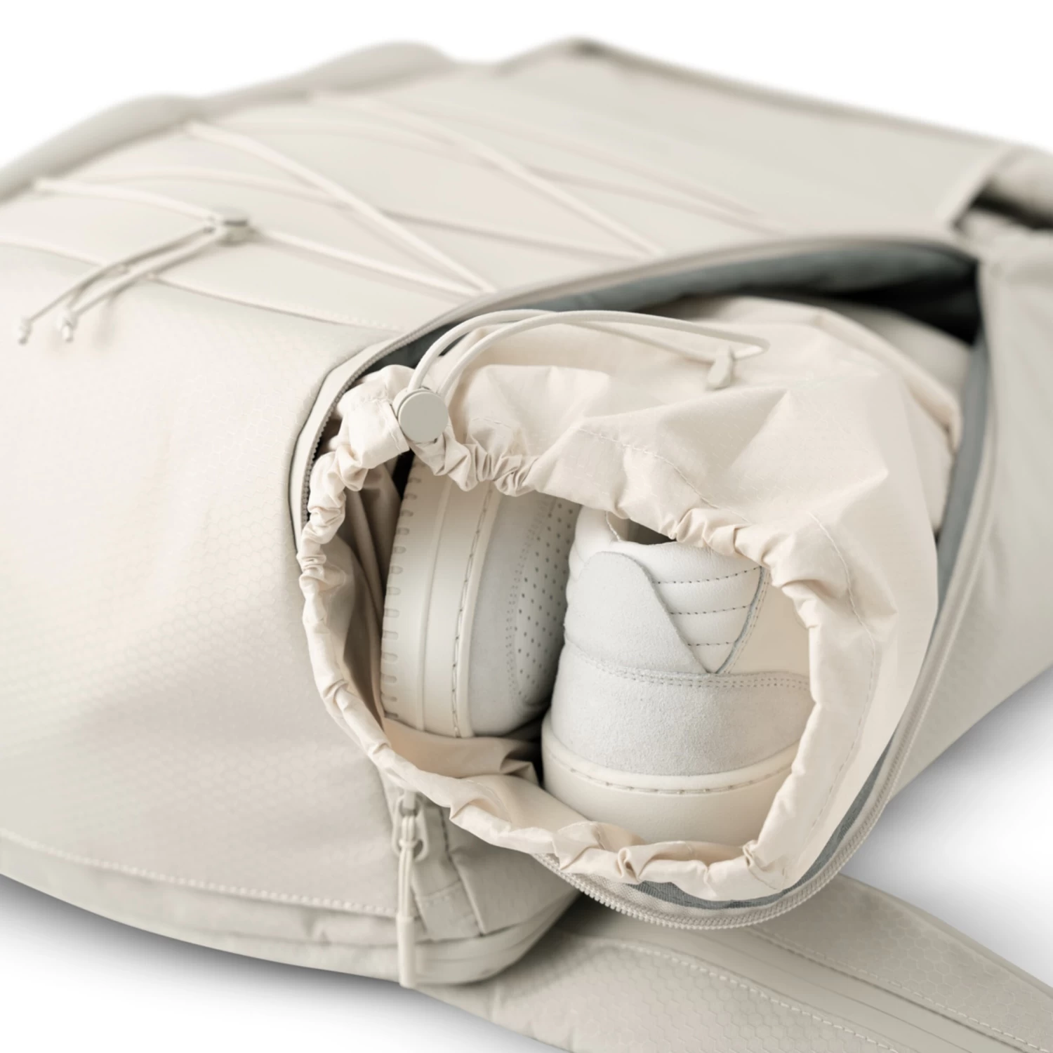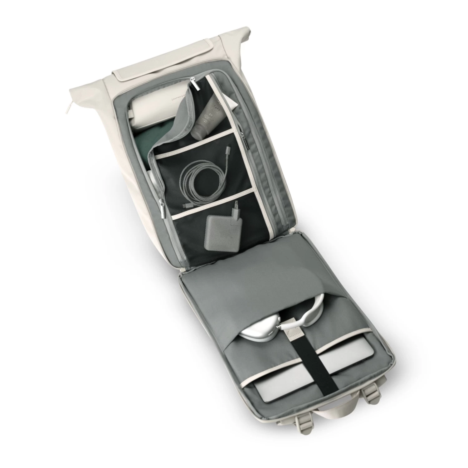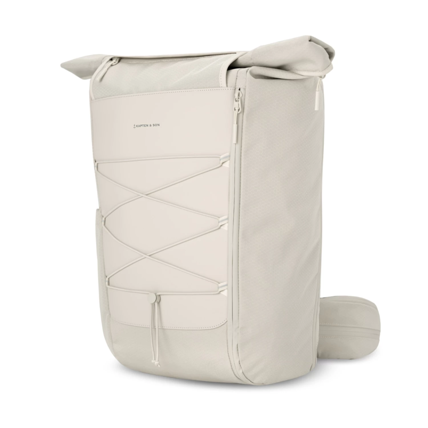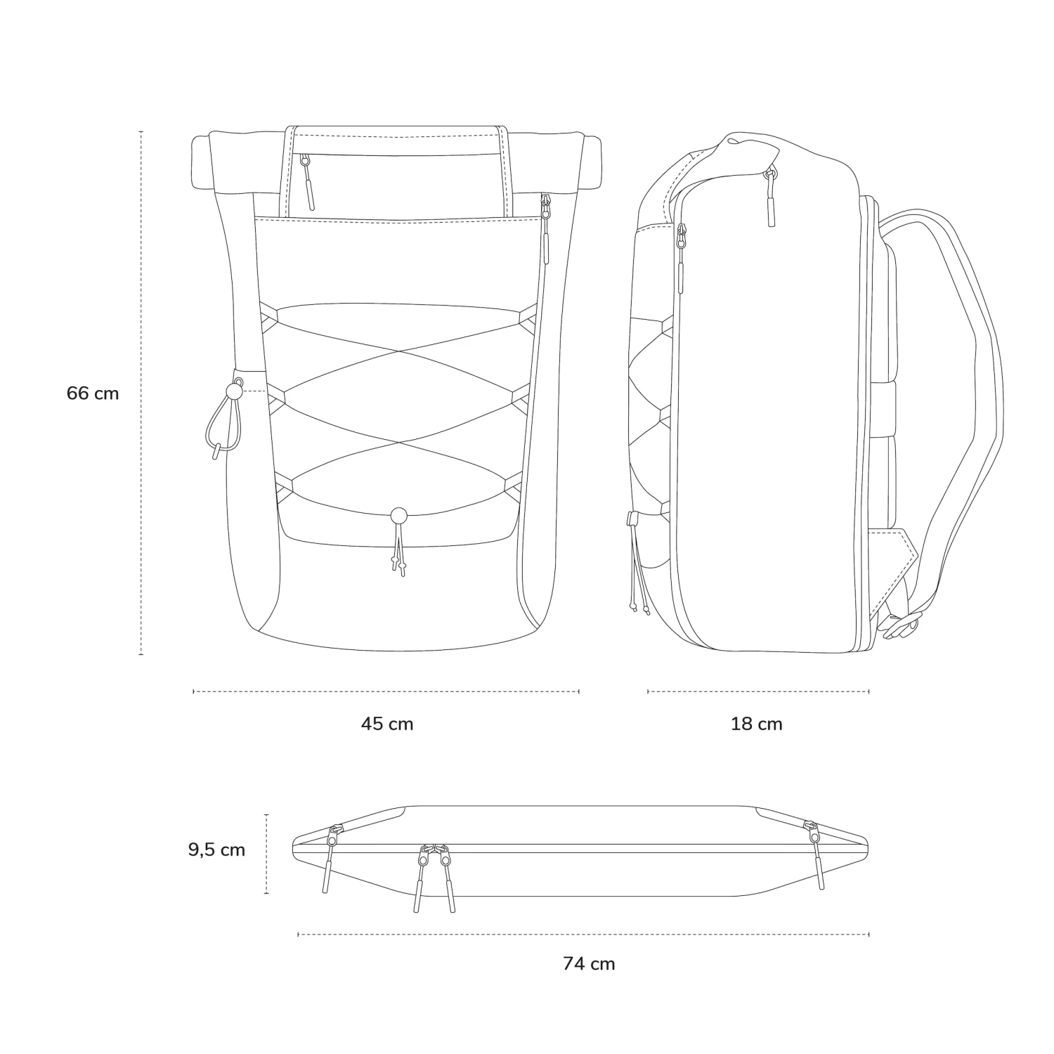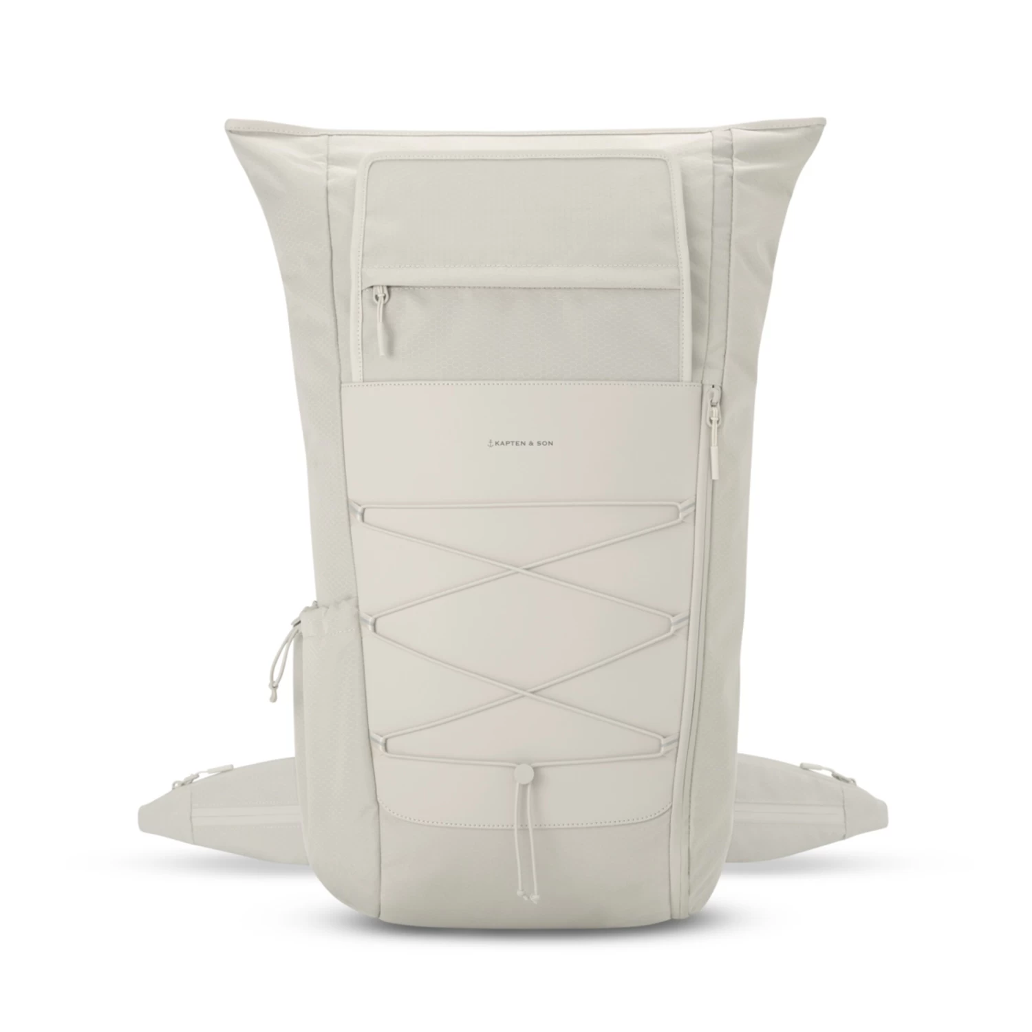 The best is yet to come: Und mit dem Banff Sandstone auf deinem Rücken bist du sowohl auf besondere Alltagsmomente als auch die ganz großen Erlebnisse vorbereitet! Der Stauraum lässt sich von 28 Liter auf bis zu 35 Liter erweitern; damit ist der Banff unser bisher größter Backpack. Dank der komplett aufklappbaren Rückseite inklusive Kofferbefestigung und vieler zusätzlicher Innen- und Außenfächer verlierst du trotzdem nie den Überblick. Die integrierten Taschen für Smartphone, Laptop und Tablet sind mit Micro Fleece ausgekleidet und so extra sicher. Seitlich befindet sich eine Flaschenhalterung sowie ein großes, separates Fach. Hier lassen sich zum Beispiel deine Schuhe verstauen. Auf der Vorderseite findest du neben der Fronttasche auch ein elastisches Band, in dem du deine Jacke einklemmen kannst. Dank des magnetischen Rolltop-Verschlusses lässt sich der Banff easy öffnen und schließen. Gleichzeitig sorgt ein Reißverschluss für zusätzliche Sicherheit. In einem weiteren versteckten Fach befindet sich übrigens ein Regenschutz, den du an nassen Tagen über deinen Banff ziehen kannst. Apropos Regen: Durch das neue Ripstop-Material ist dieser Backpack extrem wasserabweisend. Das gilt übrigens auch für die Reißverschlüsse. Um Rückenschmerzen vorzubeugen, ist der Banff mit einer speziellen Polsterung sowie Brust- und Hüftgurt ausgestattet. Der Clue: Du kannst den Hüftgurt abnehmen und als stylische Sling Bag tragen, die Platz für Essentials, wie Handy, Schlüssel & Co bereithält. Besonders stolz sind wir auf das Design des Banff: Er macht jedes Abenteuer mit und ist selbst im Büro ein stylischer Begleiter. Cleanes Creme, farblich passende Hardware und perfekt aufeinander abgestimmte Materialstrukturen machen den Banff Sandstone zu einem modernen Backpack, der voller Funktionen steckt. Mit seinem minimalistischen Look ist er ein absoluter All-Time Favourite!