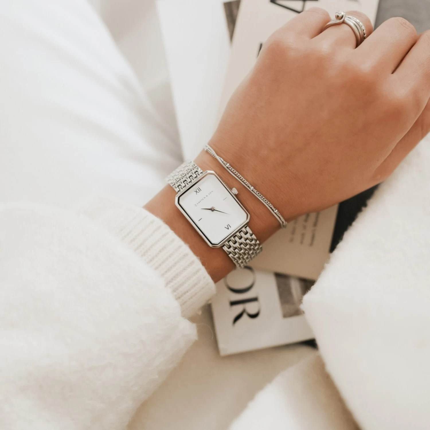 Du liebst filigrane Accessoires? Dann ist unser Bracelet Sphere Silver aus hochwertigem 316L Edelstahl das perfekte SchmuckstĂŒck fĂŒr dein Handgelenk! Dabei punktet dieses Armkettchen gleich doppelt, denn es vereint zwei ArmbĂ€nder mit unterschiedlicher Gliederstrukturen: eine schmale, schlichte Schlangenkette mit einem zarten, mit Kugeln besetzten Panzerkettchen. Dank der wasserabweisenden Eigenschaften kannst du das allergiefreundliche Armband Tag und Nacht tragen – auch beim Sport, unter der Dusche oder beim Baden im Meer. Mit unserem Armband Sphere Silver setzt du ein Fashion-Statement!