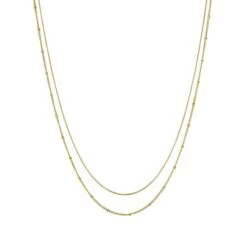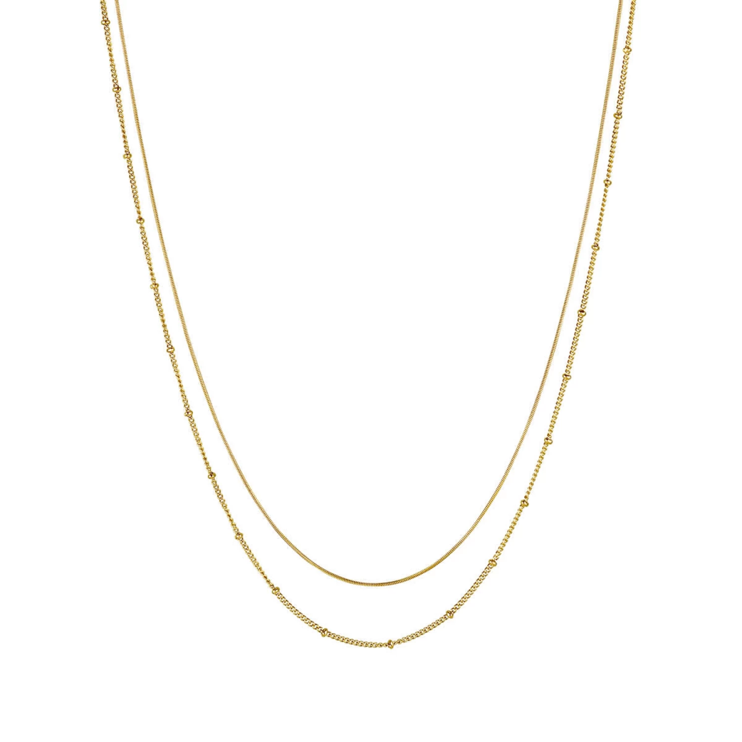 Du bist auf der Suche nach einem neuen SchmuckstĂĽck, das durch einen klassisch eleganten Stil ĂĽberzeugt und gleichzeitig ein Fashion-Statement setzt? Dann ist unsere goldfarbene Zweireiher-Halskette Sphere Gold das perfekte Accessoire fĂĽr dich, denn sie besticht durch ihren filigranen Look und kombiniert gekonnt zwei unterschiedliche Ketten-Styles miteinander – eine schlichte Schlangenkette mit einem zarten Panzerkettchen mit Kugelbesatz. Gefertigt aus hochwertigem 316L Edelstahl mit 14K Goldbeschichtung gehört dir mit der Sphere aber nicht nur eine Halskette, die durch ihren edlen Look ĂĽberzeugt, sondern zudem auch bezĂĽglich ihrer Qualität punktet! Dank ihrer allergiefreundlichen und wasserabweisenden Eigenschaften kannst du dieses SchmuckstĂĽck Tag und Nacht tragen – egal ob im Alltag, beim Sport oder auf Reisen im Meer: unsere Halskette Sphere Gold belgeitet dich wohin du auch gehst und ist ein absolutes Must-Have fĂĽr alle Liebhaber*innen des angesagten Layer-Looks!