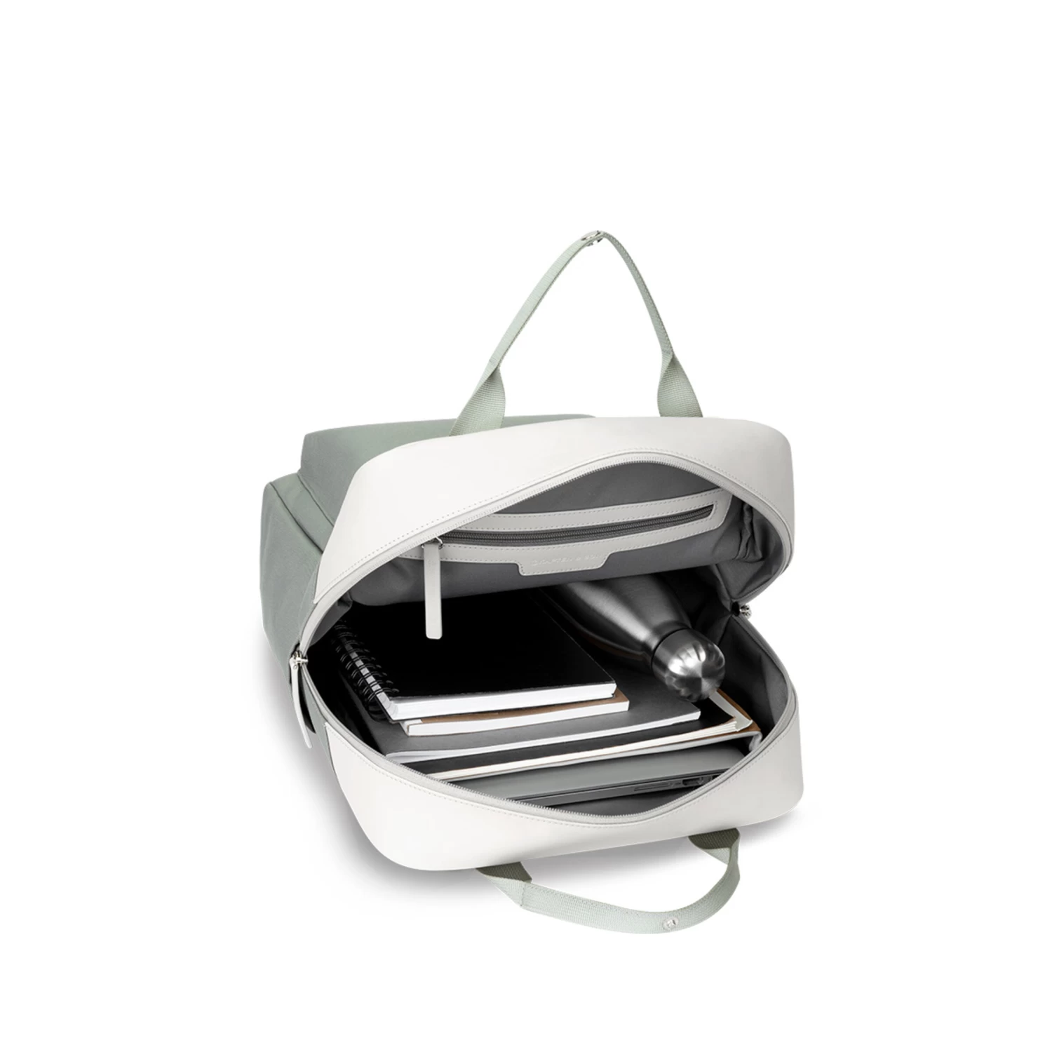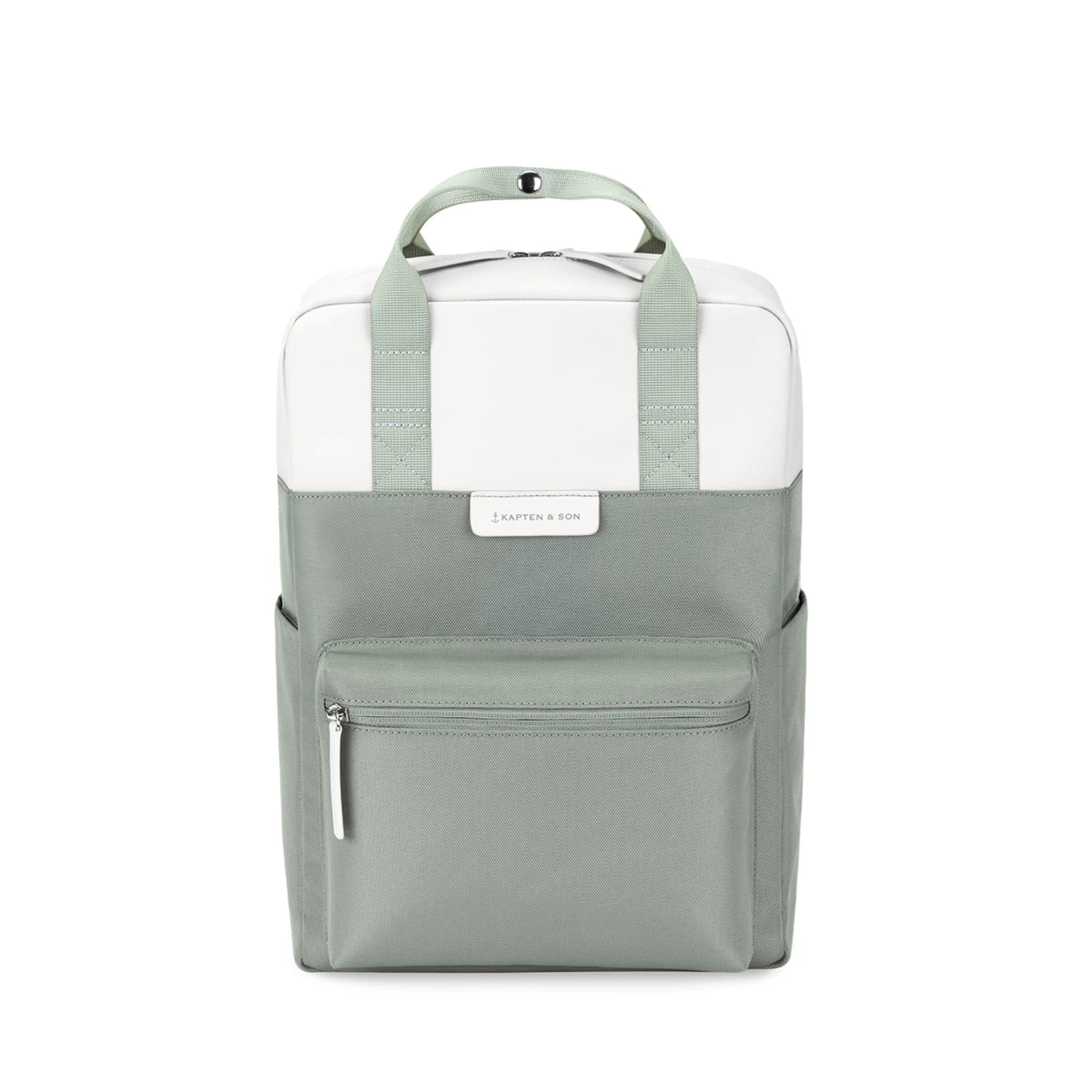It’s the little things in life! Das beste Beispiel dafür ist der Bergen Small Muted Sage. Die kleinere Variante unseres Bestsellers überzeugt durch ihre einzigartige Farbkombination aus hellem Salbeigrün und mattem Grauweiß. Der Mix aus veganem Tech-Material und recyceltem PET sorgt nicht nur für die hochwertige Qualität des Bergen Small, sondern auch dafür, dass sich Alltagsspuren ganz easy entfernen lassen. Dein neuer Backpack ist wasserabweisend und pflegeleicht und bietet dir mit einem Fassungsvolumen von 9 Litern genügend Stauraum für all deine Essentials. Du wirst schnell feststellen, dass du ein kleines Platzwunder auf dem Rücken trägst! Im extra gepolsterten 13 Zoll-Innenfach kannst du deinen Laptop sicher transportieren. Der Rucksack enthält außerdem ein Innenfach sowie ein Außenfach mit Reißverschluss und zwei Seitenfächer, um Ordnung in deine Habseligkeiten zu bringen. Praktisch und stylisch in frischen Frühlingsfarben: Das ist der Bergen Small Muted Sage.