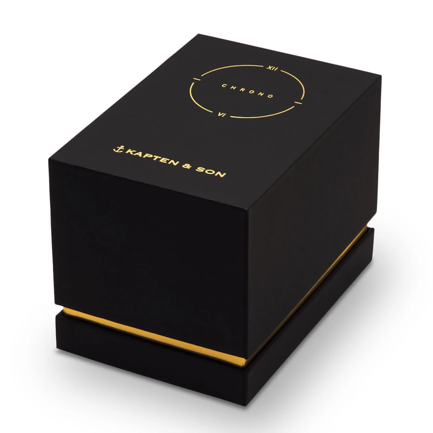 Sie ist eine unserer absoluten Lieblinge: die Chrono Uhr. Seinen Ruf verdankt dieser Chronograph vor allem seinem edlen Design kombiniert mit der Verwendung hochwertigster Materialien und gezielt ausgewählten Features – und jetzt gibt es ihn sogar in einer limitierten Winter-Edition! Unser Chrono Gold Green Steel ĂĽberzeugt mit einem Zifferblatt in extravagantem, angesagtem SmaragdgrĂĽn, das von einem robusten Edelstahlgehäuse aus edlem Gelbgold umschlossen wird. FĂĽr zuverlässigen Schutz sorgt das hochwertige Uhrenglas aus besonders kratzfestem Saphirglas, das zudem zwei weitere, separate Zifferblätter fĂĽr die integrierte Stoppfunktion und Datumsanzeige umrahmt. Das HerzstĂĽck des Chronos bildet das zuverlässige Uhrwerk des Schweizer Herstellers Ronda, welches diese Uhr zu einem treuen Wegbegleiter macht, an dem man lange Zeit Freude haben wird. Damit ist der Chrono Gold Green Steel nicht nur ein wunderschöner Blickfang, sondern auch ein absolutes Premiumprodukt und ein Must-Have, fĂĽr alle Uhrenliebhaber*innen.