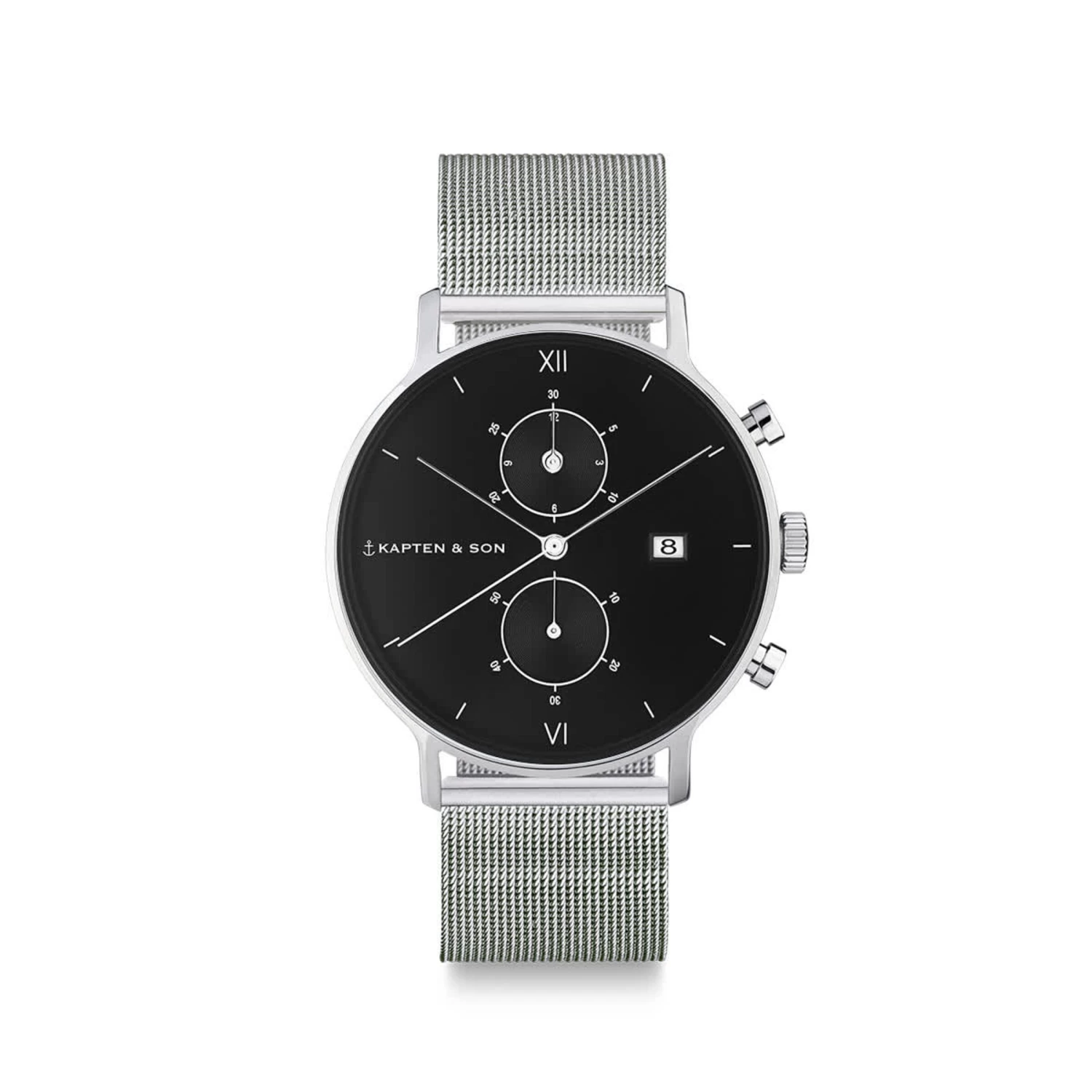 Die Chrono Small Silver Black Mesh Uhr ist ein wahrer Eyecatcher! Ihre coole Eleganz gepaart mit ihrer erstklassigen Premium-Qualität machen diese Uhr zu einem unserer absoluten Favoriten, an der du bestimmt lange Zeit Freude haben wirst! Die silberne Armbanduhr kommt mit einem edlen schwarzen Ziffernblatt, das als besonderes Extra über eine integrierte Stoppfunktion und separate Datumsanzeige verfügt. Umschlossen wird dieses von einem besonders kratzfesten, leicht gewölbtem Saphirglas. Das Herz des hochwertigen Chronographen bildet ein zuverlässiges Uhrwerk des Schweizer Herstellers Ronda. In Kombination mit dem zarten feingliedrigen Milanaise-Armband entsteht so eine stylische und filigrane Uhr, die jedes Outfit veredelt und durch die minimalistische Formgebung ein zeitloses Accessoire darstellt.