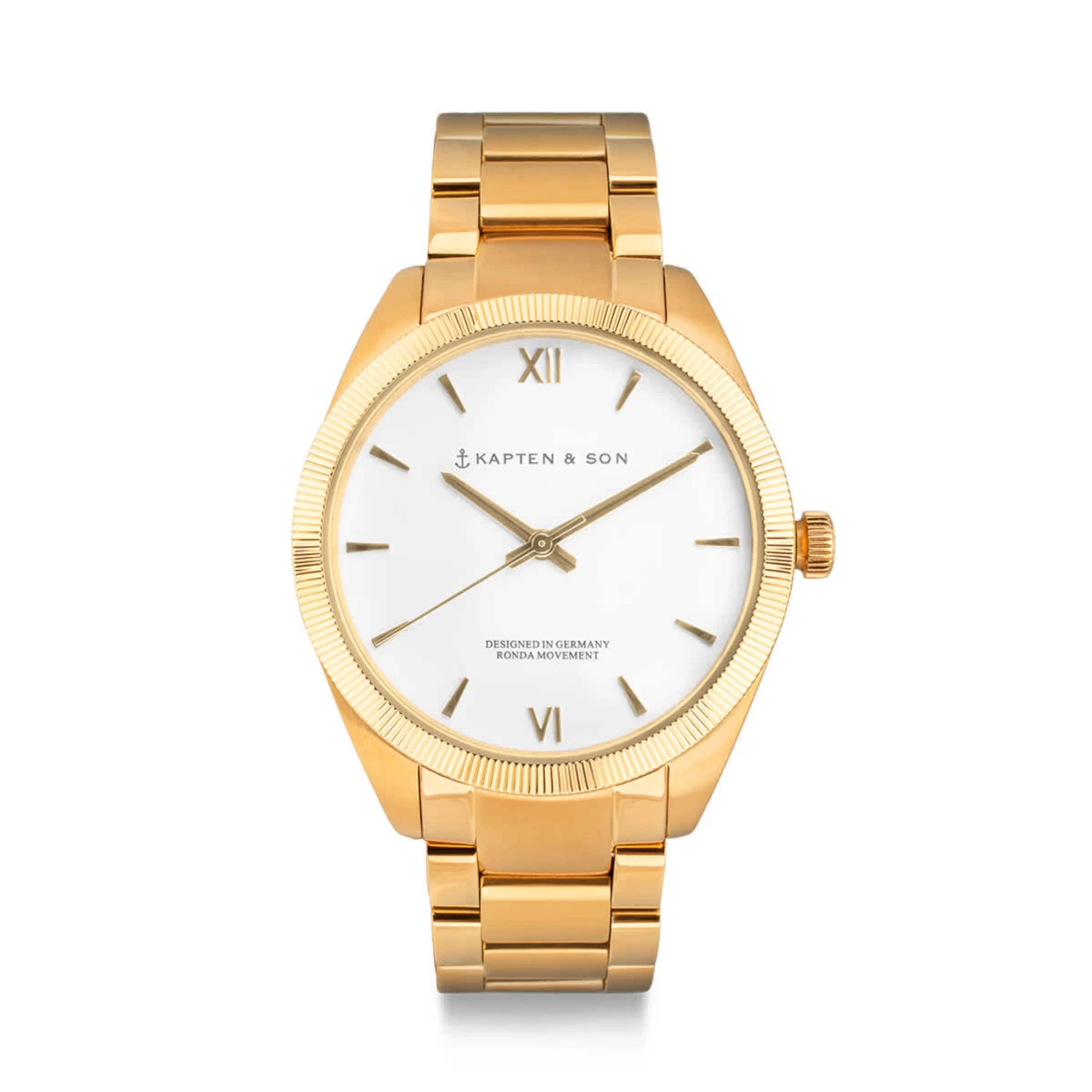 Elegant, klassisch und trendig zugleich – das ist unsere Crush Gold Steel mit einem Durchmesser von 36mm. Ihre filigrane goldfarbene LĂĽnette in Kombi mit einem cremeweiĂźen Ziffernblatt sorgt fĂĽr ein zeitloses Design, das sich vielfältig kombinieren lässt. Während ihr hochwertiges Gehäuse aus 316l Edelstahl besonders robust ist, bildet ein präzises Quarzuhrwerk des Schweizer Herstellers Ronda das HerzstĂĽck der Crush Gold Steel. Abgerundet wird der schicke Look der Uhr durch ein glänzendes Edelstahl-Armband mit 18mm Dicke, das nickelfrei und damit auch fĂĽr Allergiker geeignet ist. Dank eines Schmetterlingsverschlusses kannst du das Uhrenband ganz einfach abnehmen und anlegen. Zudem ist unsere Crush Gold Steel bis 5 ATM wasserdicht, weshalb du sie auch beim Duschen tragen kannst und SchweiĂź an heiĂźen Tagen, beim Reisen oder beim Sport ihr nichts ausmachen kann. Damit ist die Crush Gold Steel Uhr das perfekte Accessoire fĂĽr alle, die es edel und praktisch zugleich mögen!