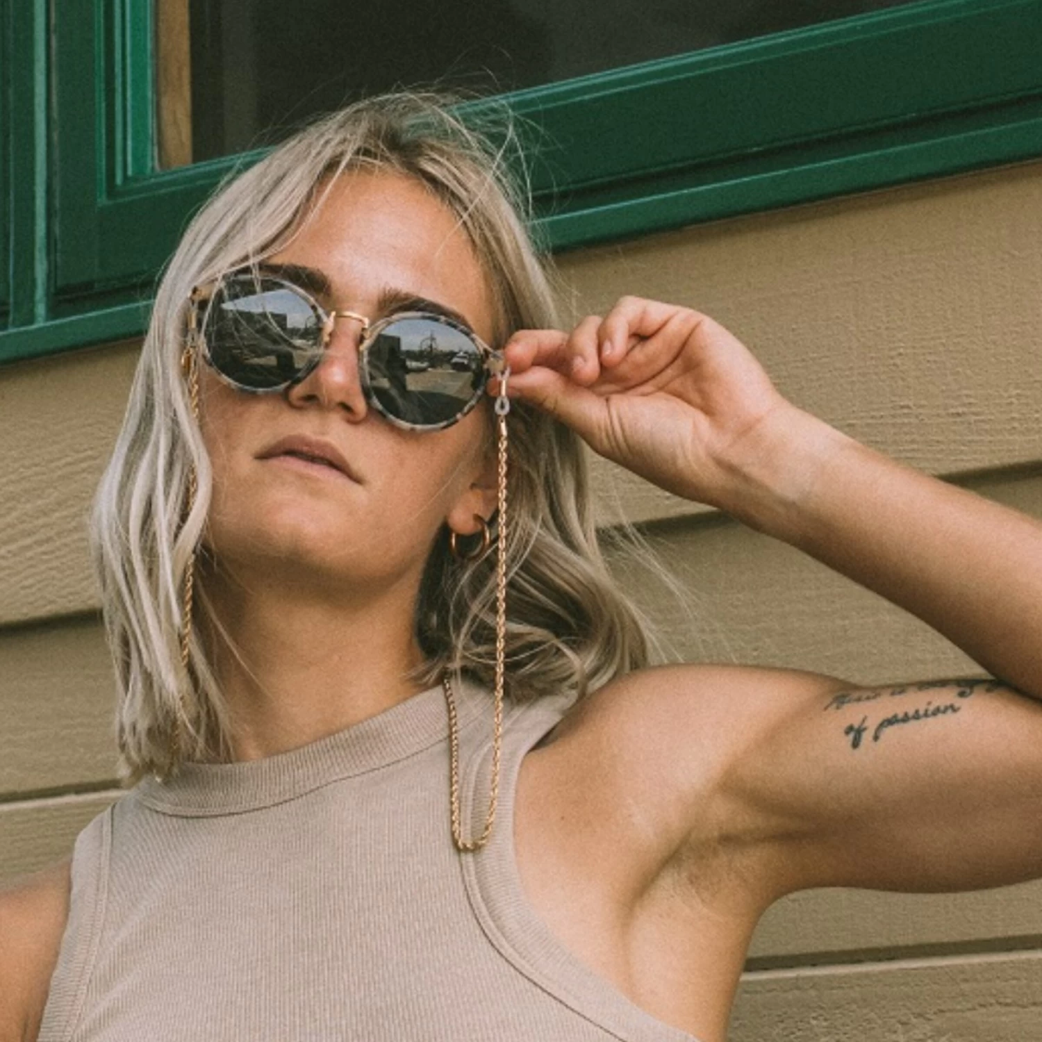 Dein absolutes Statement-Accessoire für den Sommer: unsere Brillenkette Catania in angesagter Swirl-Optik. Die markante Formgebung erinnert an eine klassische Singapurkette und verleiht dieser Sonnenbrillenkette ihren einzigartigen Look. Dank der größenverstellbaren Endstücke ist es ein Leichtes, sie zu verschiedensten Brillenmodellen zu kombinieren. Gefertigt ist sie aus goldenem Messing. Mit der Brillenkette Catania gehört lästiges Brillensuchen ab sofort der Vergangenheit an. Get the Look und setze dich und deine Brille gekonnt in Szene!