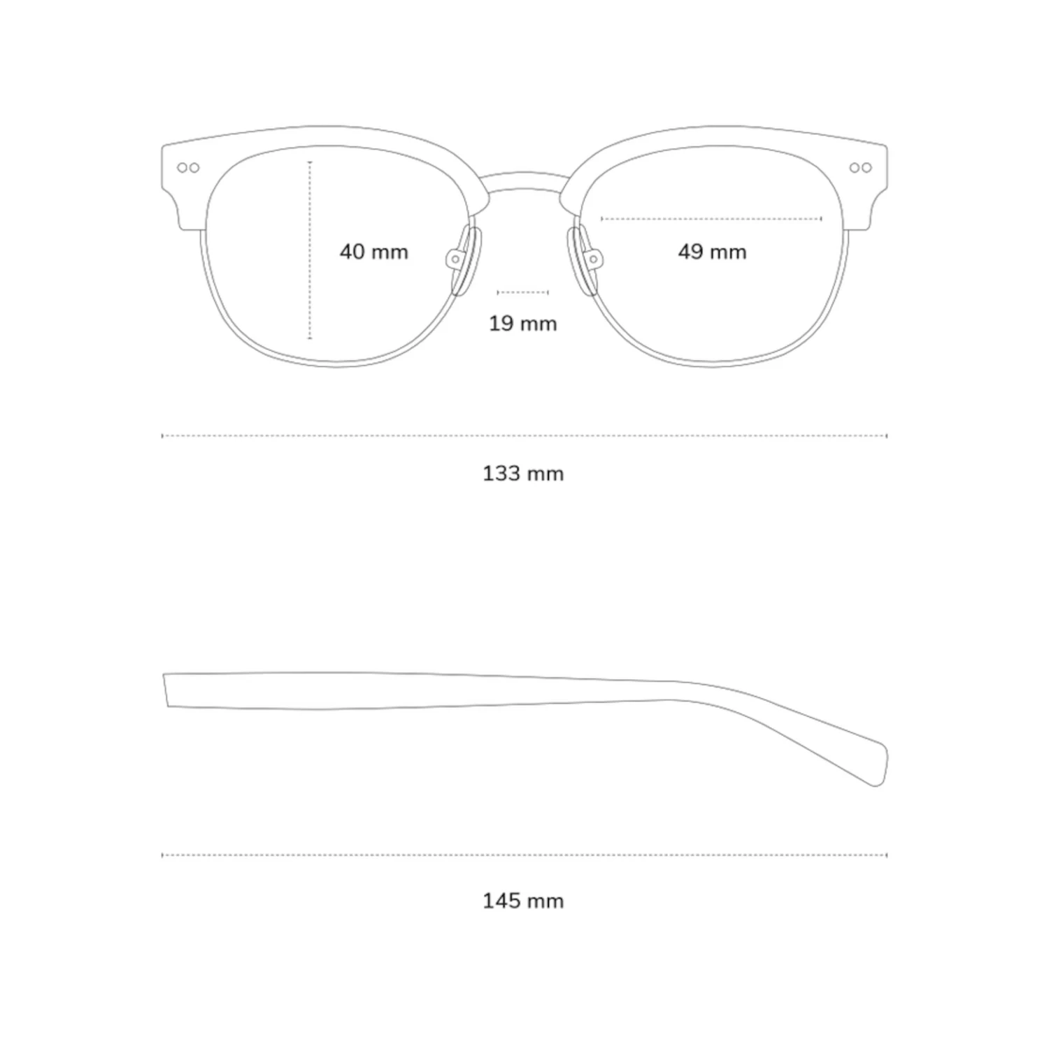- Rahmenbreite: 133mm, Bügellänge: 145mm, Glasbreite: 49mm