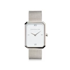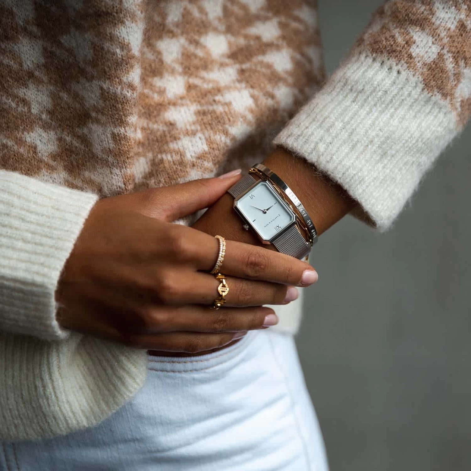 Zeitlos schön, klassisch, und dennoch etwas ganz Besonderes – das ist die Grace Silver Mesh. Ihr fein geschliffenes eckiges Gehäuse aus Edelstahl verleiht der silbernen Armbanduhr ihren einzigartigen Charakter, der durch das elfenbeinweiĂźe, klassische Zifferblatt abgerundet wird. Das silberne Mesh Uhrenarmband schmiegt sich perfekt an dein Handgelenk an und macht jedes deiner Abenteuer mit. Kratzfestes Mineralglas und ein präzises Quarzuhrwerk des Schweizer Herstellers Ronda versprechen dir beste Qualität, sodass die Grace dich stilsicher auf jedem Abenteuer begleitet.
