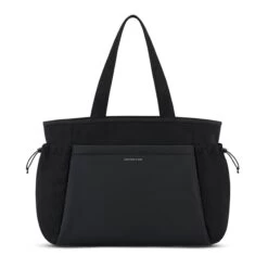 Eine Tasche, alle Möglichkeiten: Die Hellvi begleitet dich durch deinen Tag. Egal, ob durchgetaktet oder voller unvorhergesehener Ereignisse – mit der Hellvi bist du perfekt vorbereitet, auf alles, was dein Tag zu bieten hat. Sie kombiniert all das, was du dir von einer Shopper Bag wünschst: 23 Liter Stauraum, gehüllt in cleanes Design aus hochwertigem, veganem Tech-Material und recyceltem PET. Dieser Materialmix ist besonders robust, wasserabweisend und pflegeleicht; kleine Verschmutzungen lassen sich easy wegwischen. Auf der Vorderseite findest du nicht nur eine Fronttasche mit Reißverschluss, durch das doppelt gelegte Material kannst du hier auch deine Yogamatte verstauen. An den Seiten kannst du je eine Flasche verstauen. Die Hellvi kommt außerdem mit einem separaten Schuhfach – eine Ausrede weniger, wieso du nach dem Office nicht mehr zum Sport kannst. Im Inneren der Shopper Bag findest du ein Laptopfach, eine Tasche mit Reißverschluss sowie eine Aufbewahrung für den abnehmbaren Crossbody-Gurt. Dank der Kofferbefestigung ist die Hellvi zwar der perfekte Travelbuddy, aber auch während deiner alltäglichen To-dos in der Uni, im Büro oder beim Einkaufen unterstützt sie dich zuverlässig – und sorgt immer für einen makellosen Look.