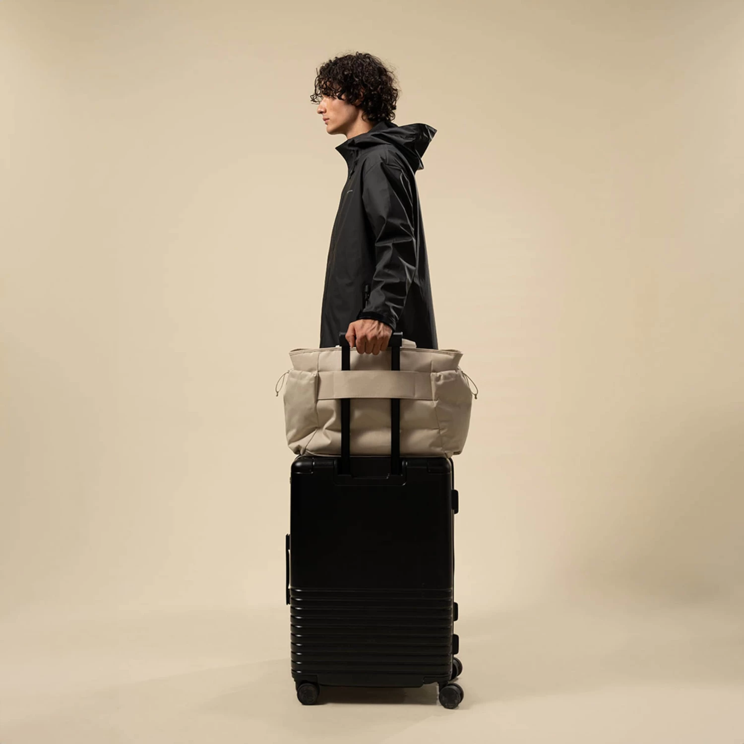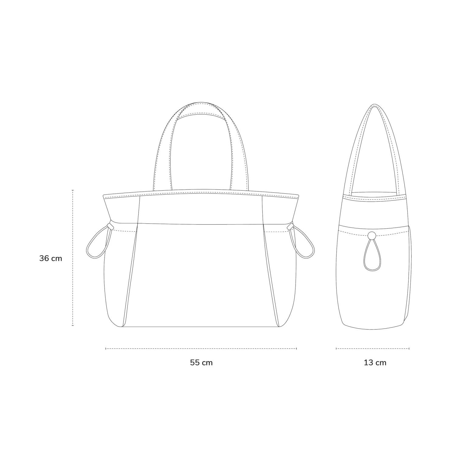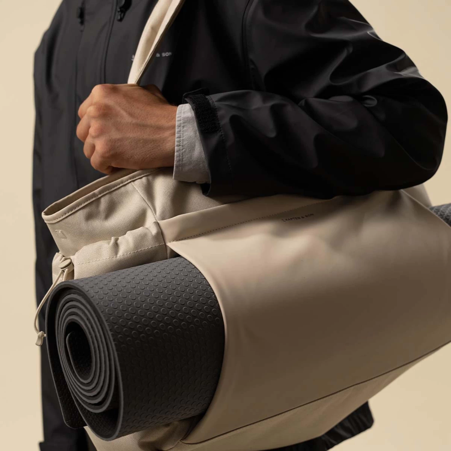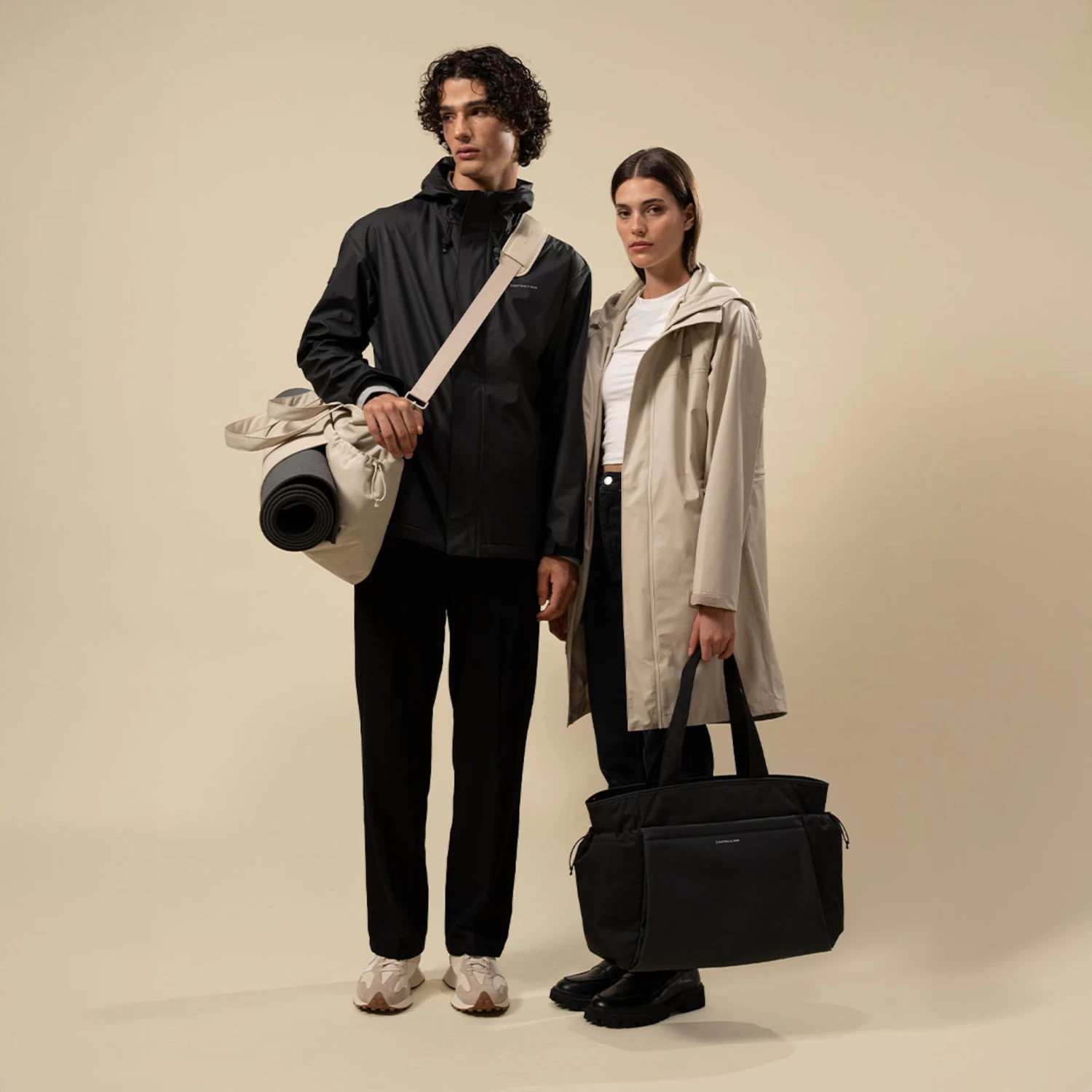 Eine Tasche, alle Möglichkeiten: Die Hellvi begleitet dich durch deinen Tag. Egal, ob durchgetaktet oder voller unvorhergesehener Ereignisse – mit der Hellvi bist du perfekt vorbereitet, auf alles, was dein Tag zu bieten hat. Sie kombiniert all das, was du dir von einer Shopper Bag wünschst: 23 Liter Stauraum, gehüllt in cleanes Design aus hochwertigem, veganem Tech-Material und recyceltem PET. Dieser Materialmix ist besonders robust, wasserabweisend und pflegeleicht; kleine Verschmutzungen lassen sich easy wegwischen. Auf der Vorderseite findest du nicht nur eine Fronttasche mit Reißverschluss, durch das doppelt gelegte Material kannst du hier auch deine Yogamatte verstauen. An den Seiten kannst du je eine Flasche verstauen. Die Hellvi kommt außerdem mit einem separaten Schuhfach – eine Ausrede weniger, wieso du nach dem Office nicht mehr zum Sport kannst. Im Inneren der Shopper Bag findest du ein Laptopfach, eine Tasche mit Reißverschluss sowie eine Aufbewahrung für den abnehmbaren Crossbody-Gurt. Dank der Kofferbefestigung ist die Hellvi zwar der perfekte Travelbuddy, aber auch während deiner alltäglichen To-dos in der Uni, im Büro oder beim Einkaufen unterstützt sie dich zuverlässig – und sorgt immer für einen makellosen Look.