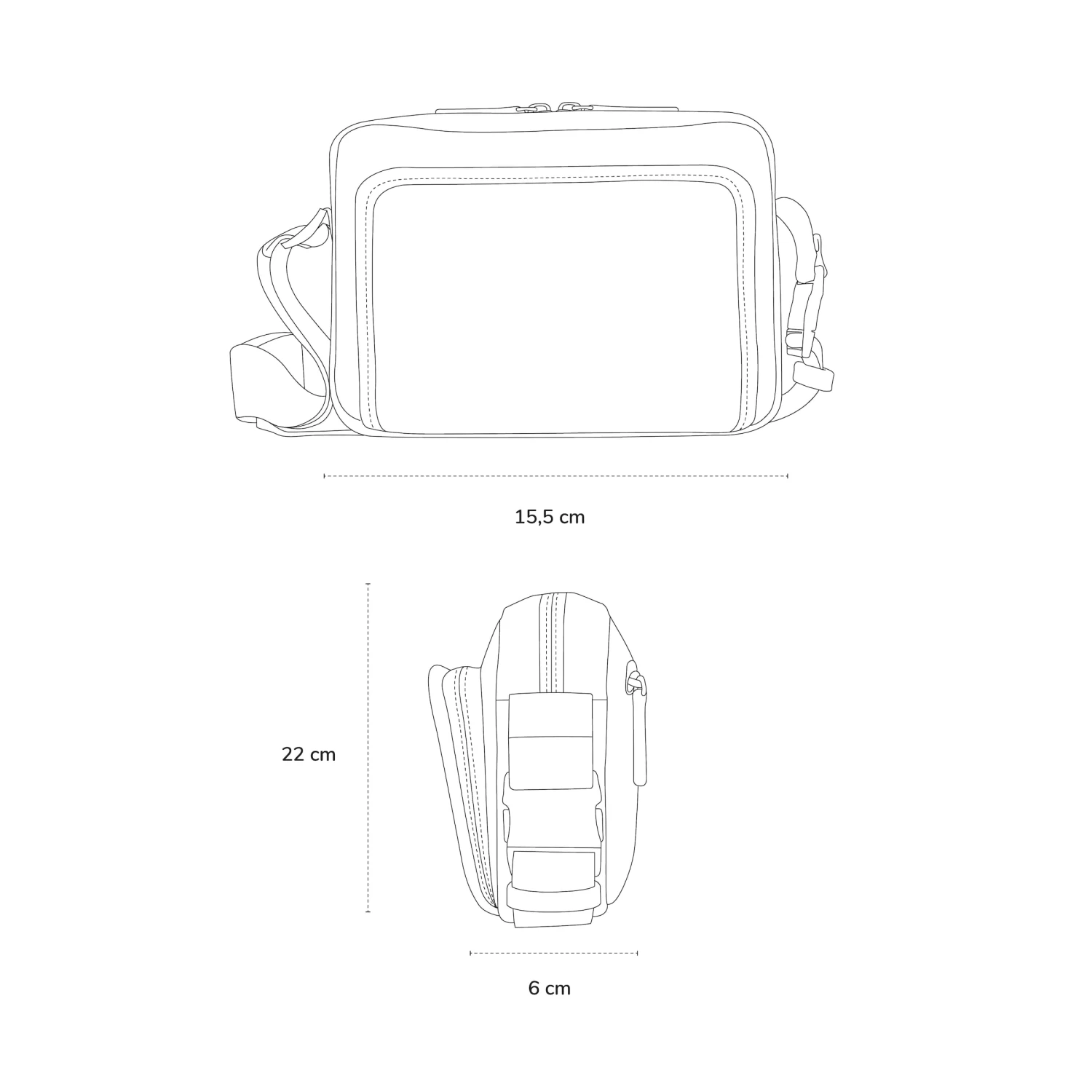 - Maße: 15,5 (H) x 22 (B) x 6 (T) cm (Größe Model Female: 1,77m / Male: 1,88m)