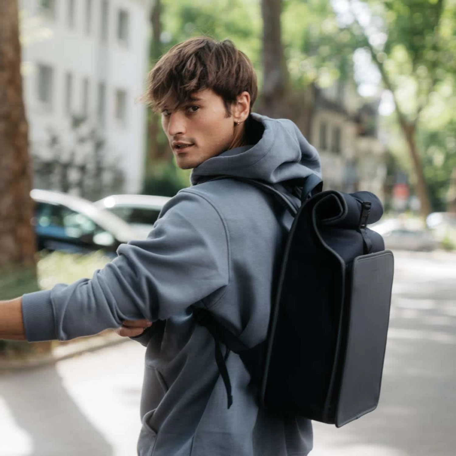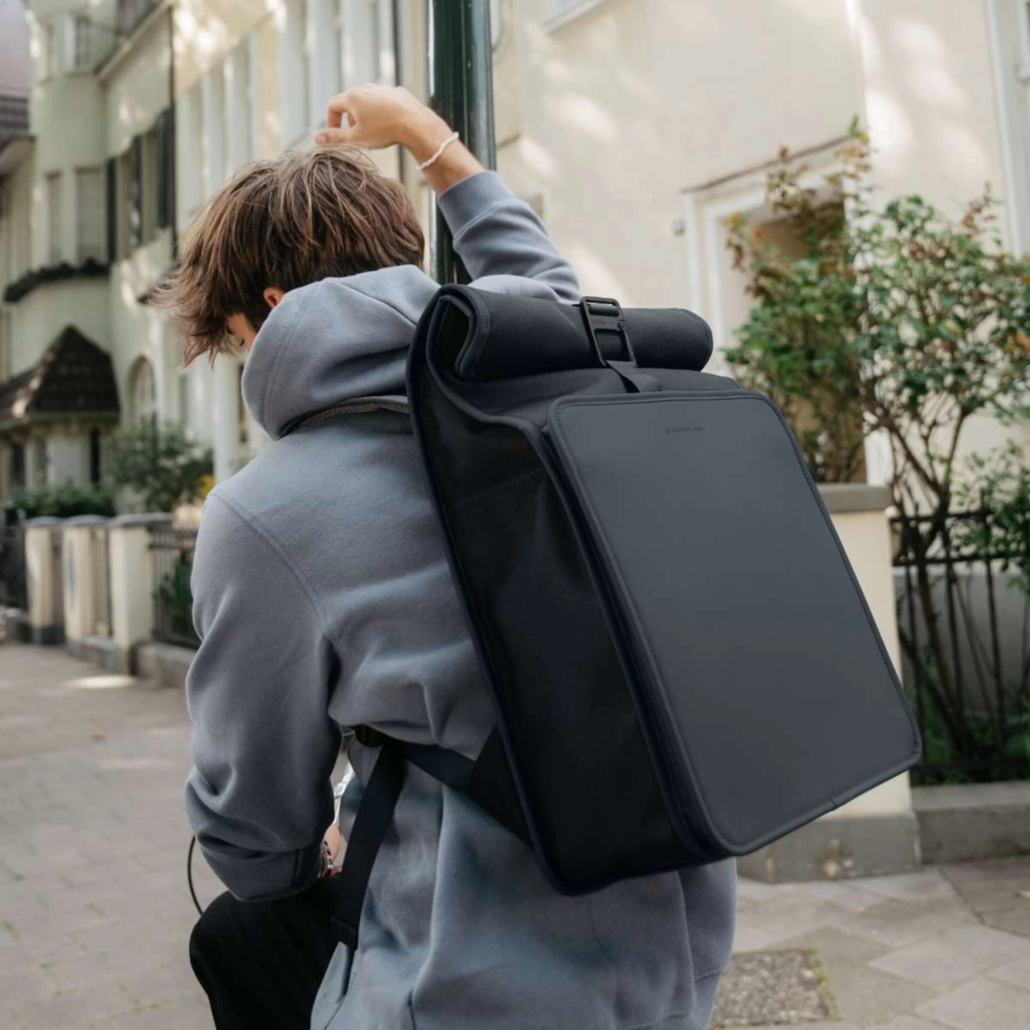 Bereit, dein blaues Platzwunder zu erleben? Dann schnall‚dir unseren Lund Pro Midnight Blue auf den RĂĽcken und erlebe, was möglich ist! Durch das Ausrollen der Flap, die sich mit einem praktischen Magnetverschluss schlieĂźen lässt, kannst du den Stauraum um ganze 5 Liter erweitern. Mit dem hochinnovativen AuĂźenfach behältst du jederzeit den Ăśberblick ĂĽber das Innenleben und hast Zugriff auf jedes Utensil. Das gepolsterte 16″-Laptopfach sowie diverse weitere Innen- und AuĂźentaschen bringen noch mehr Ordnung in dein Gepäck. Weil viel Platz viel Gewicht bedeuten kann, haben wir hier besonderen Wert auf den Tragekomfort gelegt und den Lund Pro mit einer bequemen, atmungsaktiven RĂĽckenpolsterung sowie ergonomisch anpassbaren Trägern ausgestattet. Trotzdem darf bei all der Funktionalität und all dem Komfort der Look natĂĽrlich nicht zu kurz kommen: Modernes, kĂĽhles Midnight Blue unterstreicht den cleanen Style des Lund Pro und setzt den charakteristischen eckigen Torso in Szene. Der Materialmix aus veganem Kunstleder und recyceltem PET ergibt nicht nur ein pflegeleichtes Fashion-Piece, sondern einen Next Level-Rucksack, der dir jede Reise auf Schritt und Tritt erleichtern und verschönern wird.