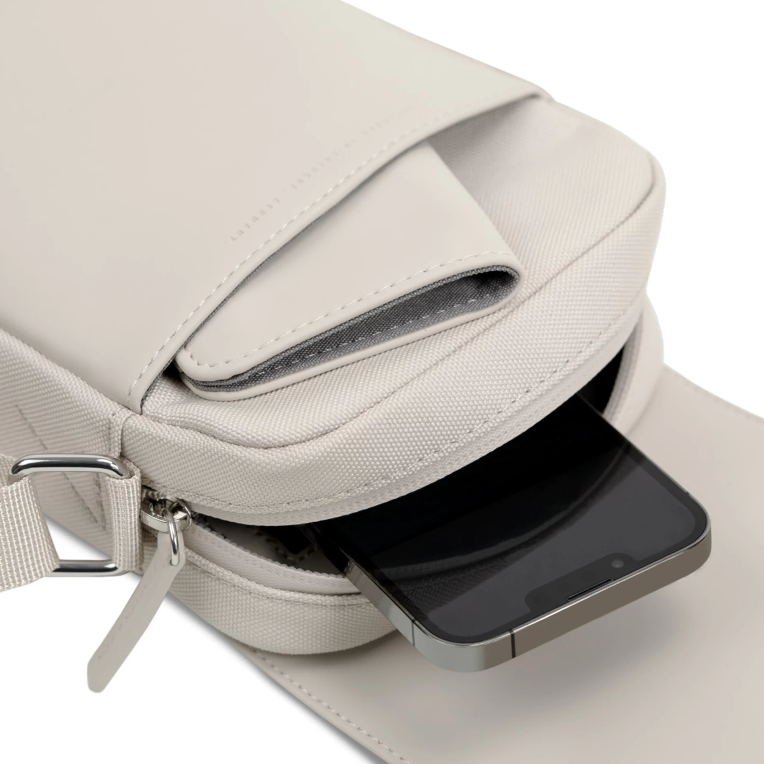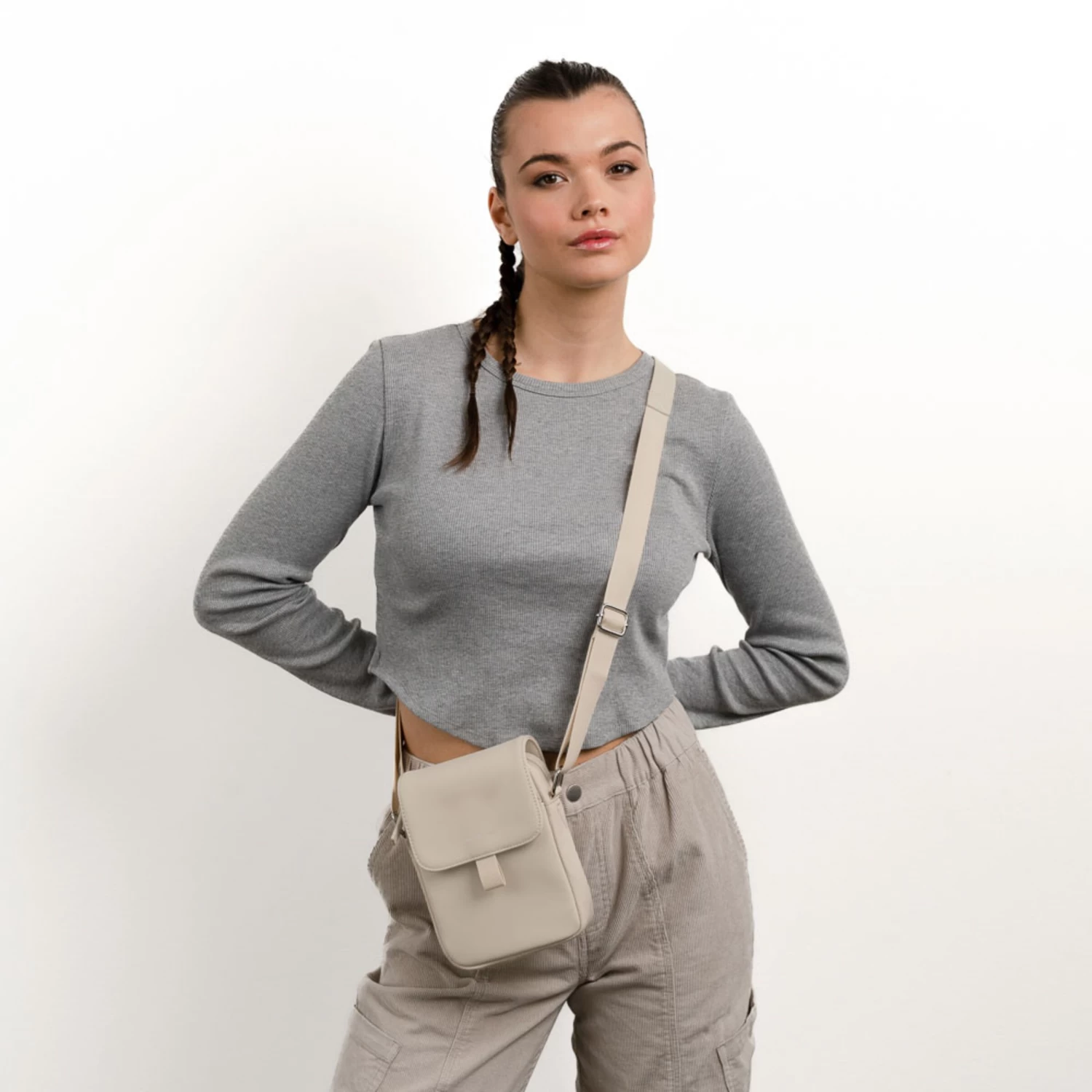Clean Chic im Hochformat: Die Mala Sandstone bewahrt deine Daily Essentials sicher und geschützt auf, damit du jederzeit alles im Griff hast! Inspiriert durch den Fyn ist die stylische Sling Bag ebenso praktisch wie stylisch und wertet jedes deiner Outfits auf. Sie schließt mit Magnet und Reißverschluss und enthält zwei Außen- sowie zwei Innenfächer. Der Träger ist auf beiden Seiten justierbar, sodass du die Länge deinen Vorstellungen entsprechend anpassen kannst. Ein hochwertiger Materialmix aus recyceltem PET und veganem Tech-Material macht die Mala Sandstone nicht nur wasserabweisend und robust, sondern betont ihr minimalistisches Design.
