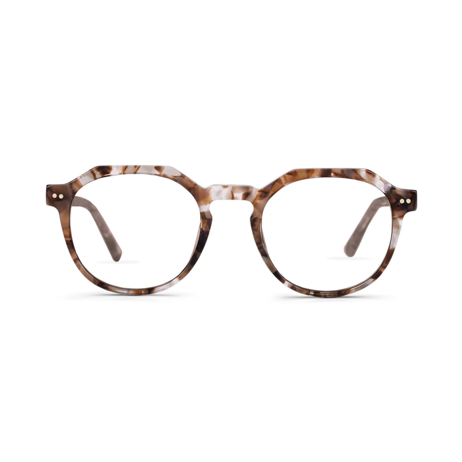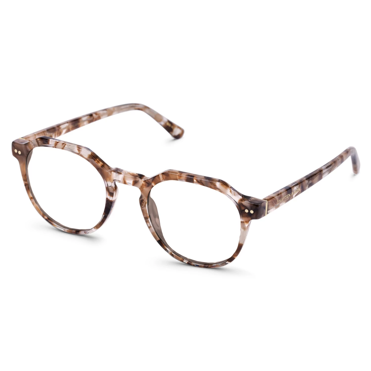Mit unserer stylischen Brille Manila Toffee Tortoise hast du den Durchblick! Dabei trifft moderne Finesse auf klassische Eleganz: der Rahmen ist auch hochwertigem Bio-Acetat gefertigt und besticht insbesondere durch seine besondere Formgebung – der obere Brillenrand ist abgeflacht und bildet mit seinen eckigen Abschrägungen einen perfekten Kontrast zum ansonsten eher runden Design dieses Modells. In einem angesagten Farb-Mix aus verschiedenen gemusterten Brauntönen ist die Manila definitiv ein It-Piece für alle Brillen-LiebhaberInnen!
