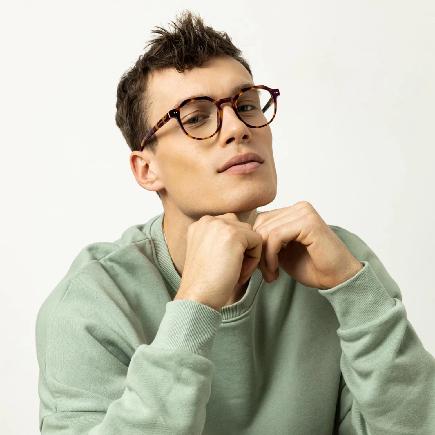 Mit unserer Brille Manila Tortoise setzt du ein Fashion-Statement: hier trifft raffiniertes Design auf absolute Premium-Qualität! Dabei besticht dieses Brillenmodell aus hochwertigem Bio-Acetat durch seine interessante Form- als auch Farbgebung in einem gemusterten Mix aus unterschiedlichen Brauntönen. Der obere Brillenrand ist dezent eckig gestaltet und erinnert entfernt an eine Wabenoptik – so erhält der ansonsten eher klassische, runde Rahmen seinen modernen, zeitaktuellen Look! Ein perfektes Accessoire für alle Ästhetik-verliebten Brillen-LiebhaberInnen!