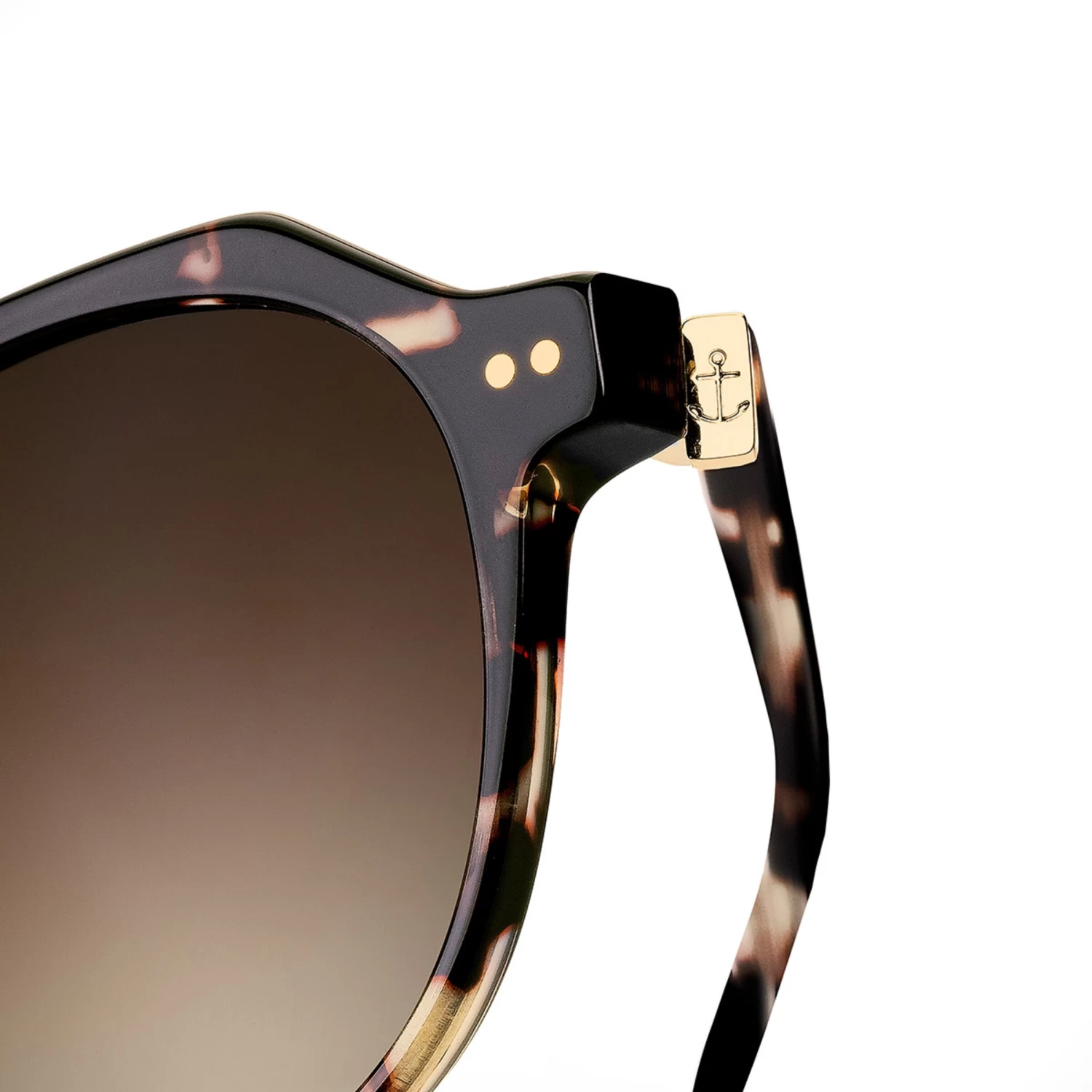 Mit unserer Sonnenbrille Manila Umber Tortoise Brown setzt du dich gekonnt in Szene, denn hier trifft zeitaktuelles Design auf Premium-Qualität! Dabei trumpft dieses Modell in dunklen, gemusterten Brauntönen sowohl durch seine Materialwahl aus hochwertigem Bio-Acetat, als auch mit seiner raffinierten Formgebung. Der obere Brillenrand ist zum Teil eckig gestaltet und erinnert entfernt an eine Wabenoptik, wodurch der eher klassische Rahmen seinen modernen Look erhält. Die ebenfalls in Braun gehaltenen Premiumlinsen aus Nylon bestechen durch ihren raffinierten Farbverlauf und untermalen den coolen Style dieser Sonnenbrille. Außerdem entsprechen sie dem höchsten Qualitätsstandard der EU-Kategorie 3 Norm und bieten deinen Augen einen optimalen UV400 Sonnenschutz. Du suchst nach einem neuen It-Piece für deinen Kleiderschrank? Dann ist die Manila Umber Tortoise Brown die perfekte Sonnenbrille für dich!