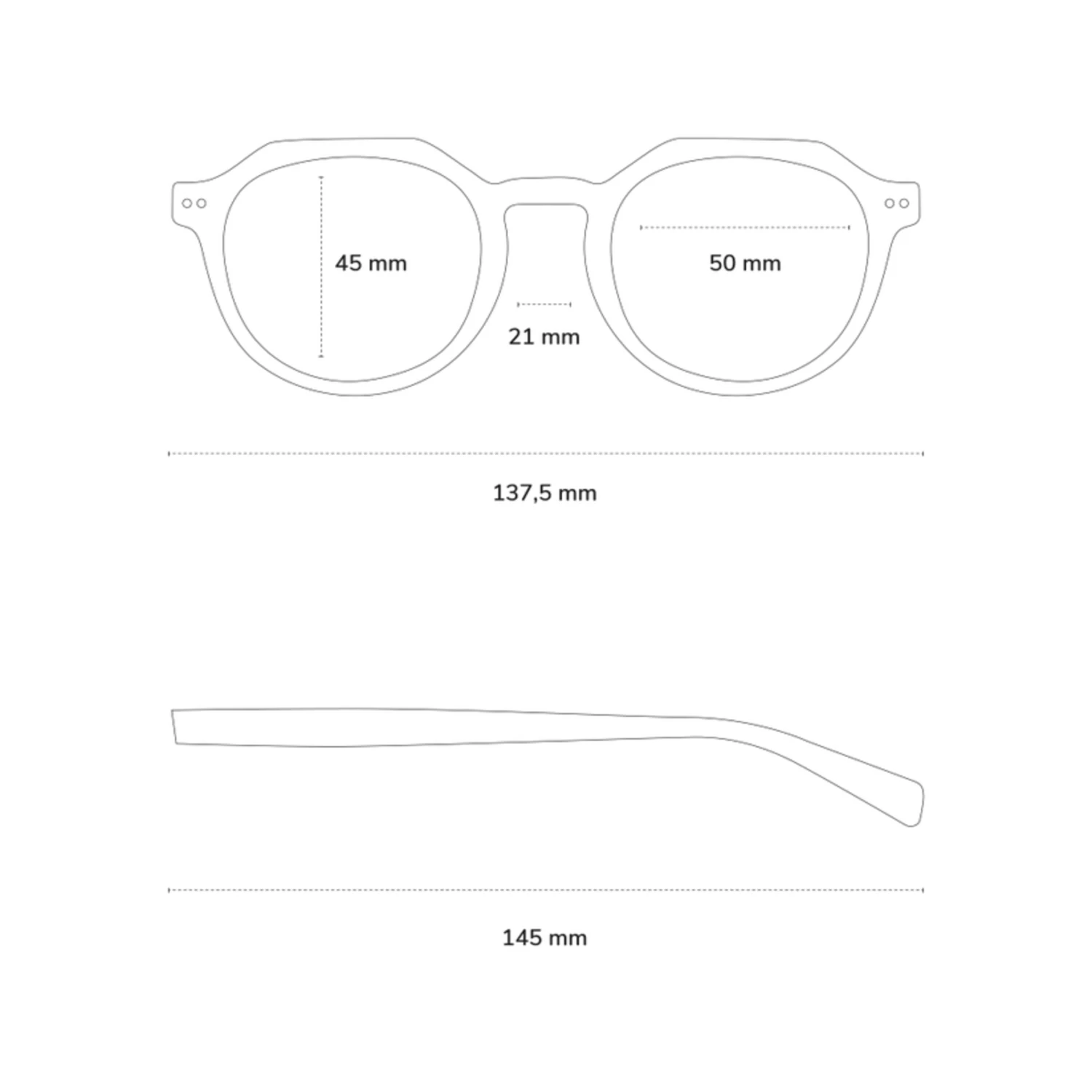 - Rahmenbreite: 137,5mm, Bügellänge: 145mm, Glasbreite: 50mm, Glashöhe: 45mm