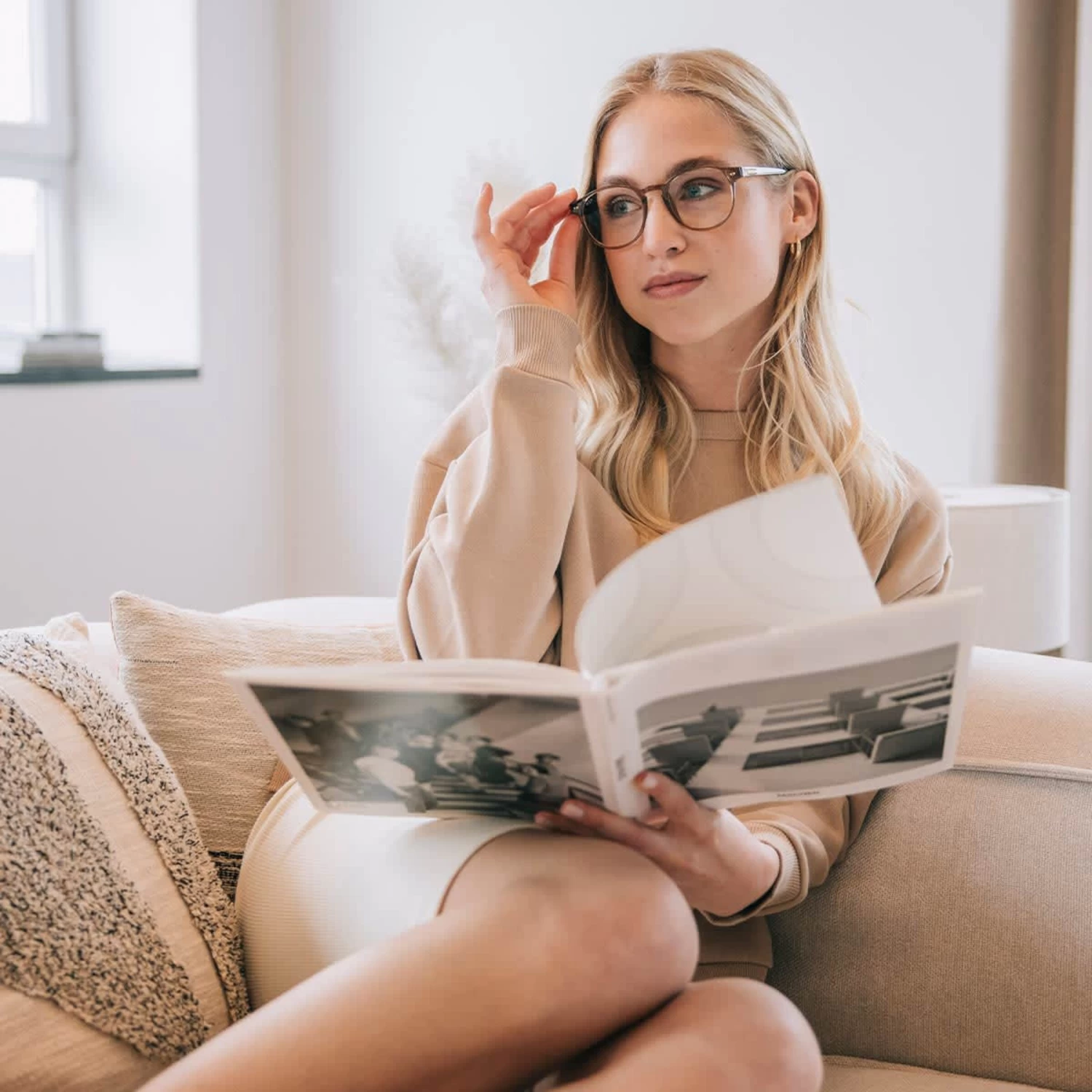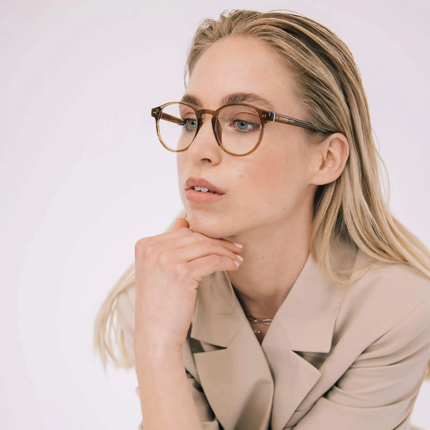 Die Blaulichtfilterbrille Marais Transparent Caramel in transparentem Braun überzeugt durch ihren runden Acetat-Rahmen. Die schöne Form und die besondere Farbgebung macht die Brille zu einem echten Hingucker! Die extra beschichteten Premium-Linsen mit erhöhtem Kratzschutz schützen deine Augen vor gefährlichen UVA-, UVB- sowie Blaulichtstrahlen, welche von den Bildschirmen deines Laptops, Tablets, Smartphones und Co. ausgestrahlt werden. So werden deine Augen aktiv entlastet und du wirst dich wieder fitter fühlen. Überzeuge dich selbst von der trendigen Computerbrille und mache sie zu deinem alltäglichen Must-Have!