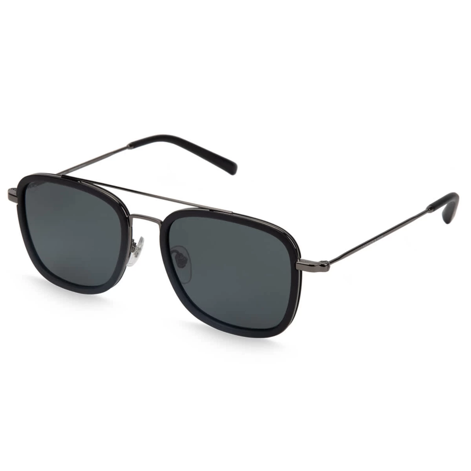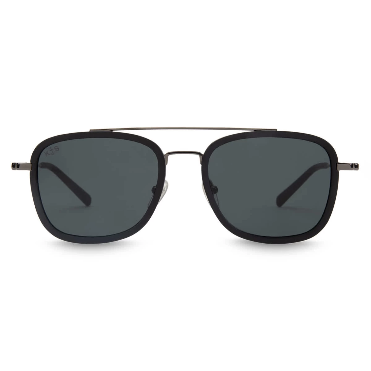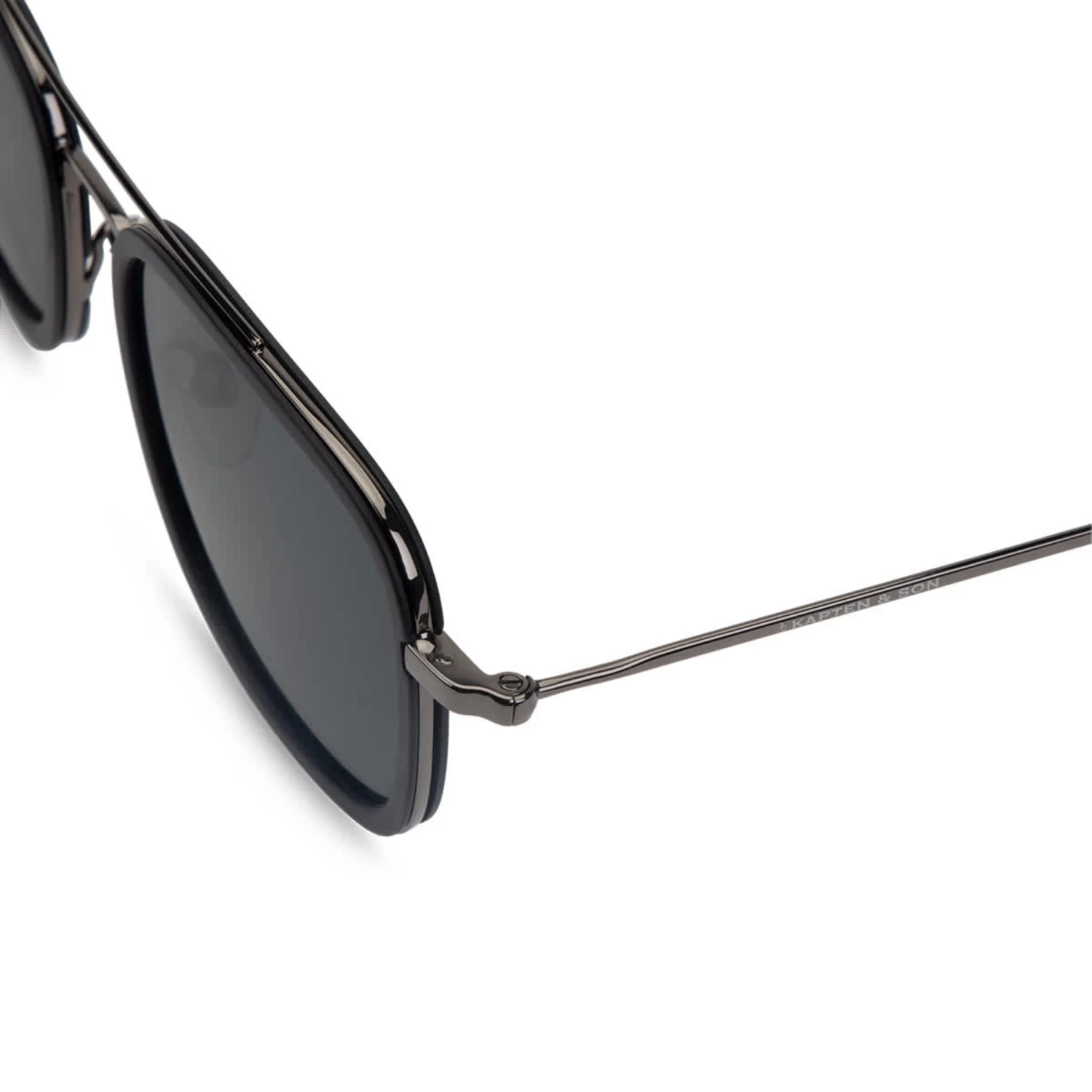 - einzigartige matt schwarze Sonnenbrille mit silbernen Details
