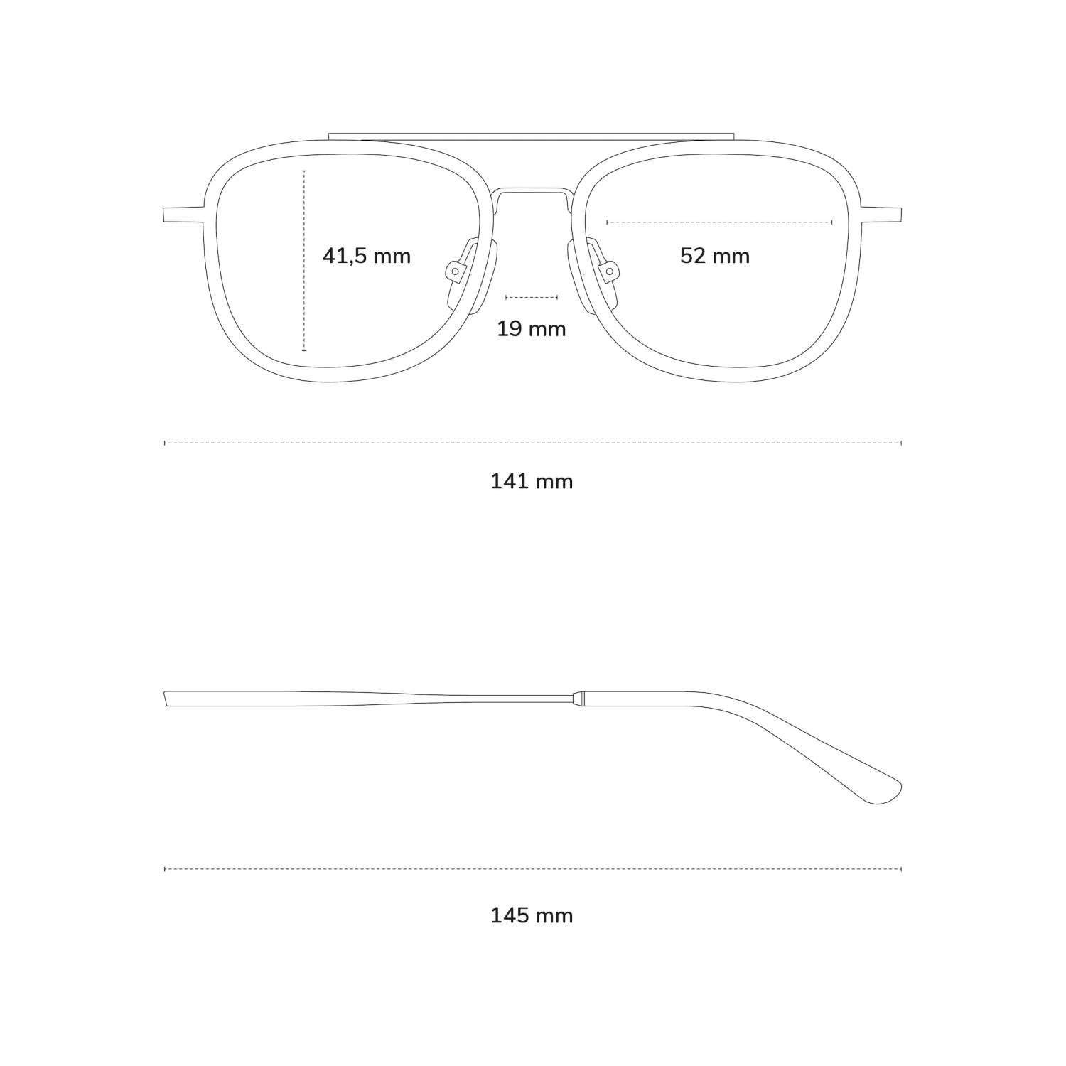 - Rahmenbreite: 141mm, Bügellänge: 145mm, Glasbreite: 52mm, Glashöhe: 41,5mm