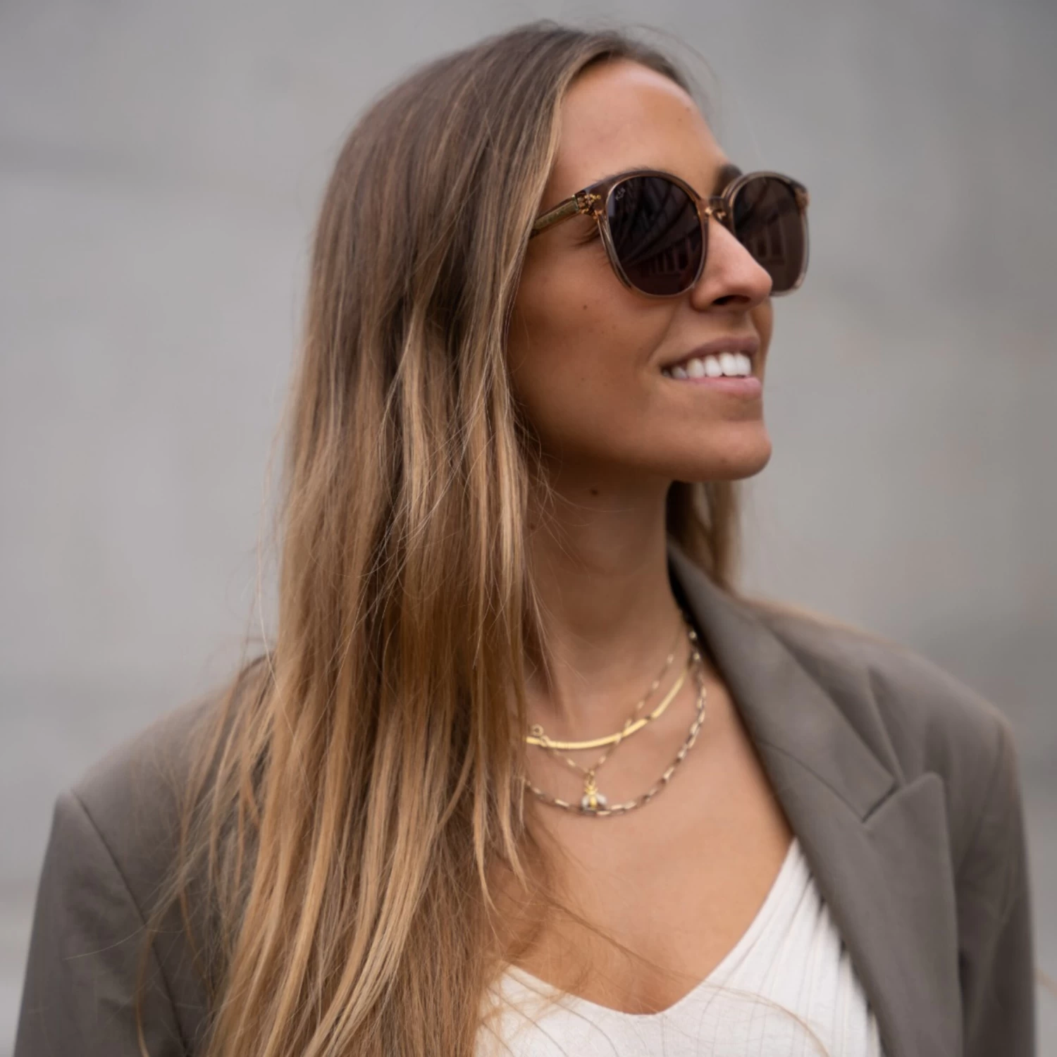 Get the look – mit der Sonnenbrille Nairobi Transparent Hazel Brown gehört dir ein farbschönes Highlight unter den Sonnenbrillen! Dabei punktet dieses Modell vor allem durch seine moderne Farbgebung in transparent hellem Braun und die erstklassige Materialwahl aus hochwertigem Bio-Acetat. Der elegant geformte Rahmen umfasst ebenfalls in braun gehaltene Premiumlinsen aus Nylon, die den Look dieser Sonnenbrille gekonnt untermalen und deinen Augen einen optimalen UV400 Schutz bieten. Sie entsprechen dem höchsten Qualitätsstandard der EU-Kategorie 3 Norm. Du suchst nach einer klassischen Sonnenbrille mit interessanter Farbgebung? Unsere Nairobi Transparent Hazel Brown setzt dich gekonnt in Szene!