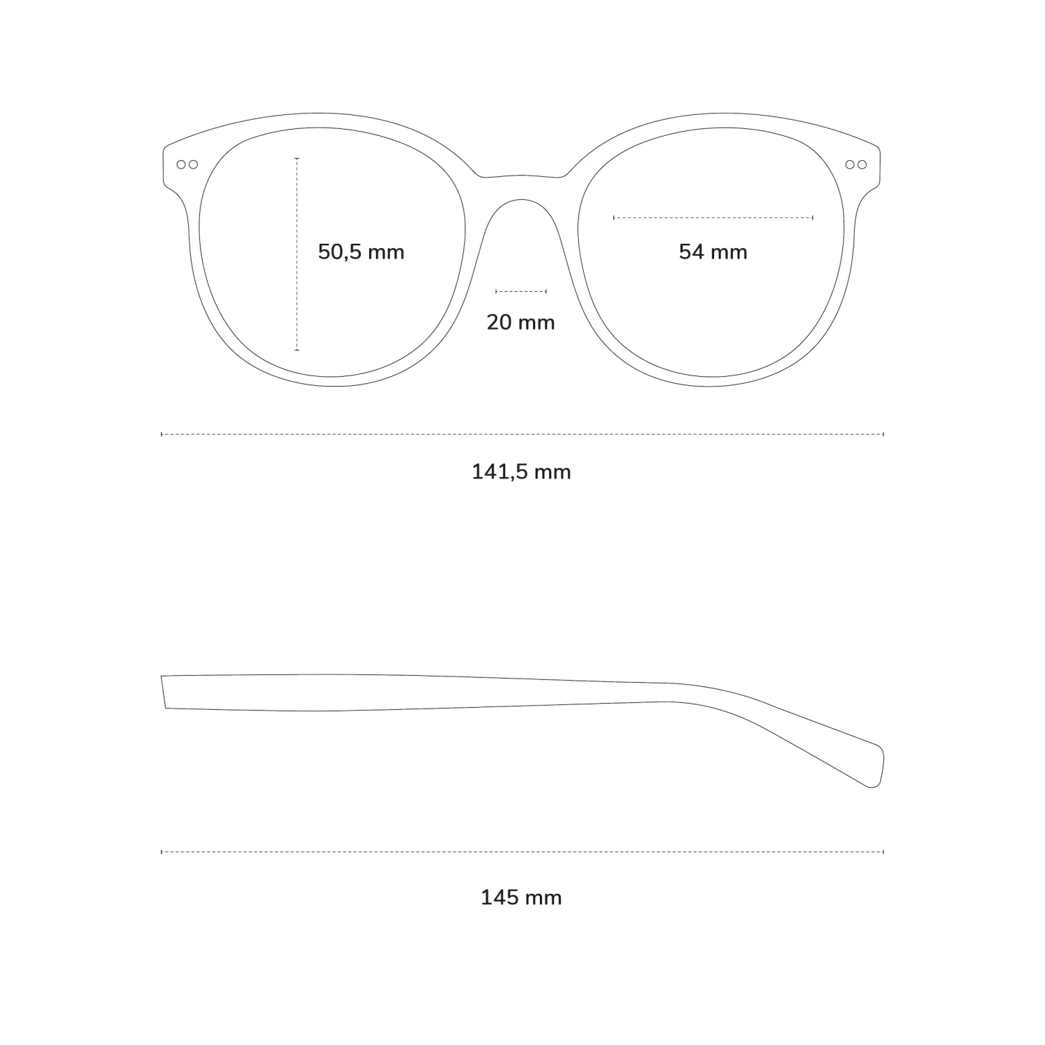 - Rahmenbreite: 141,5mm, Bügellänge: 145mm, Glasbreite: 54mm, Glashöhe: 50,5mm