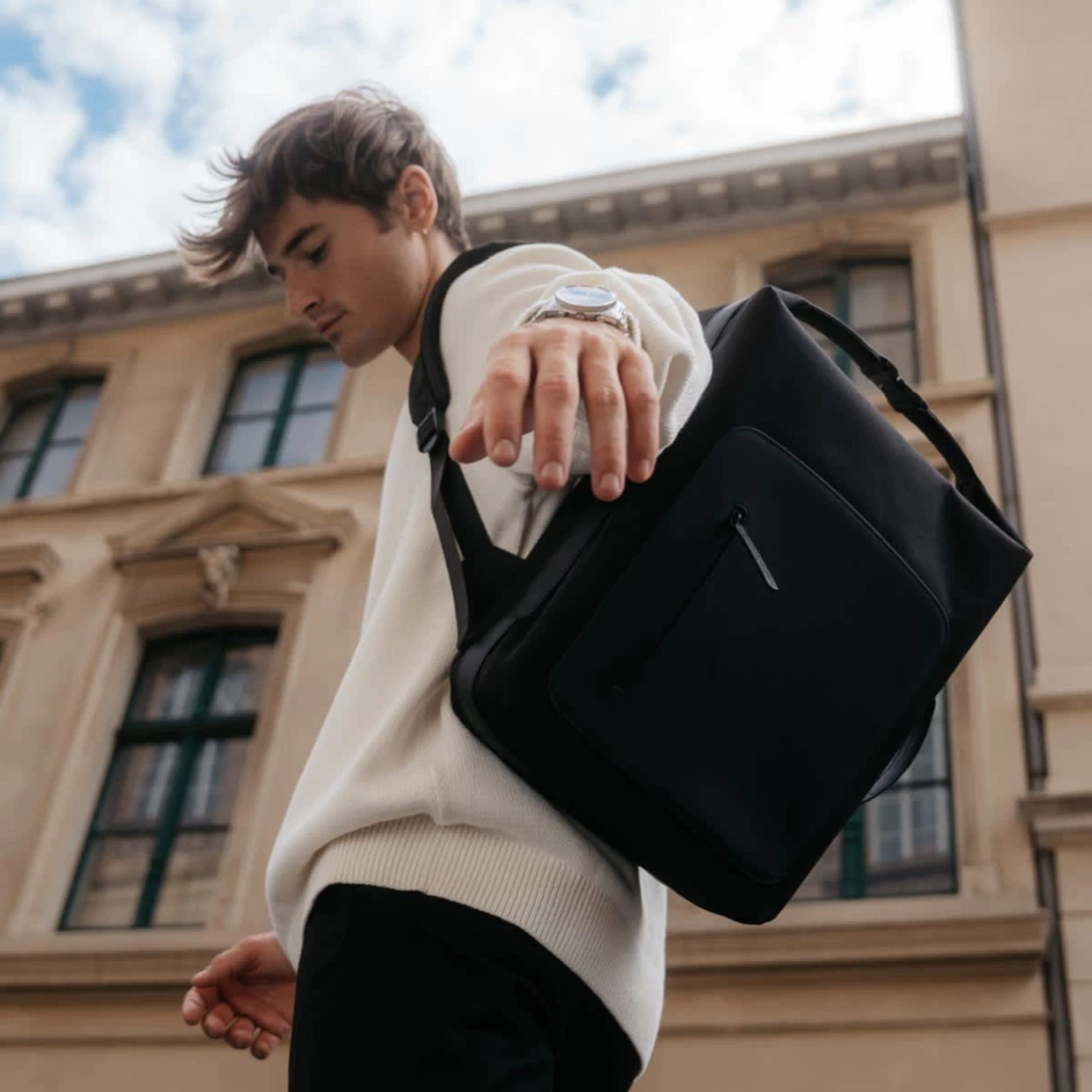 - aus veganem, wasserabweisendem Tech-Material und recyceltem PET