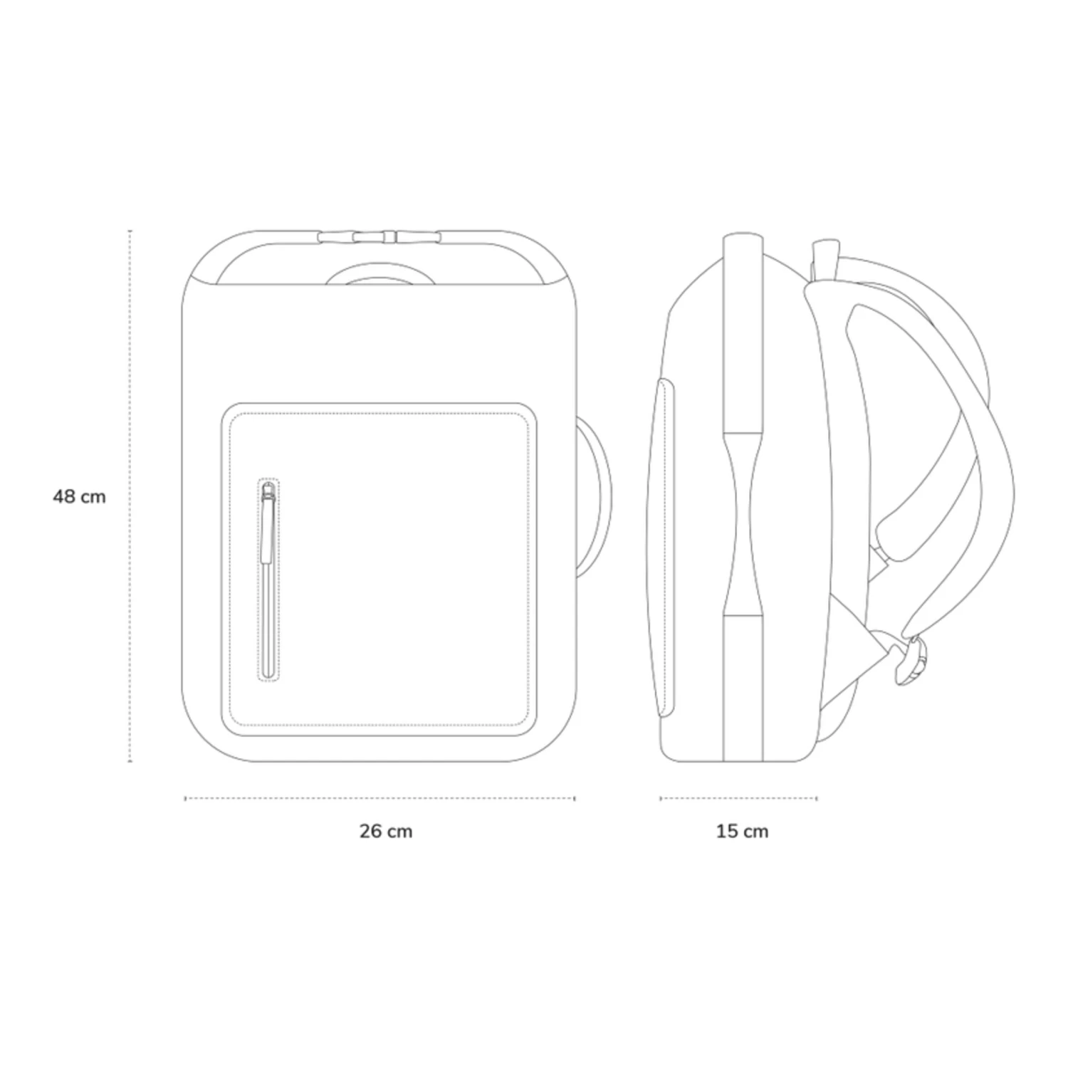- Laptopfach innen: 31 x 26 x 3 cm Laptopfach auĂźen: 35 x 26 x 3 cm (z.B. 14″ MacBook)