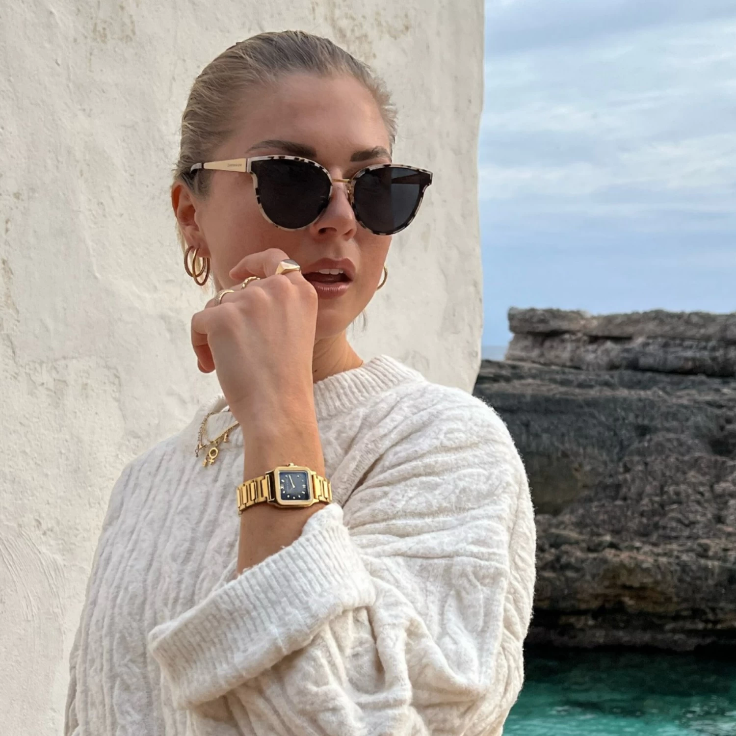 Unsere Sonnenbrille Seoul Sand Tortoise Black – definitiv ein Eye-Catcher und absolutes Must-Have! Dabei vereint diese Sonnenbrille gekonnt beides: extravagantes Design und erstklassige Qualität! Der markant elegante Rahmen besteht aus hochwertigem Acetat und besticht neben seiner stylischen Formgebung vor allem durch seine interessante Farb-Marmorierung in Beige und Schwarz. Filigrane, matt-goldene Details, wie der Nasensteg und die BrillenbĂĽgel bilden die perfekte Ergänzung – so erhält diese Sonnenbrille ihren besonderen Look! Zudem bieten die ebenfalls in Schwarz gehaltenen Premiumlinsen aus Nylon einen zuverlässigen UV400 Schutz und sie entsprechen dem höchsten Qualitätsstandard der EU-Kategorie 3 Norm. Damit lässt die Seoul Sand Tortoise Black keinen Wunsch offen und präsentiert sich als absolutes Accessoire-Highlight!