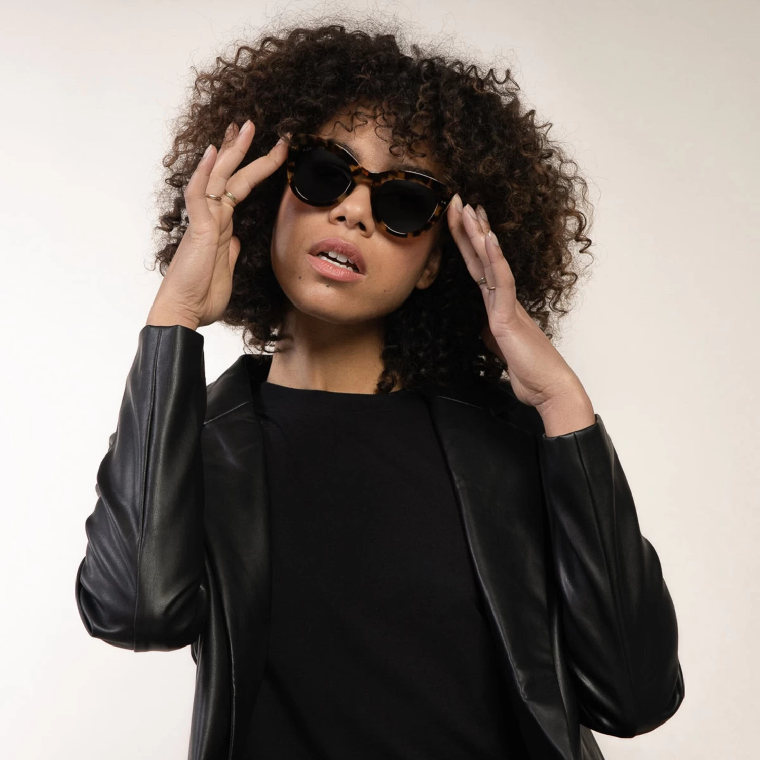 Definitiv ein Eye-Catcher: die Sofia Amber Tortoise Black – eine Sonnenbrille, die durch ihr zeitloses und gleichzeitig sehr modernes Design absolut überzeugt! Dabei erhält dieses Brillenmodell ihren eleganten Look vor allem durch ihren auffällig markanten Rahmen aus hochwertigem Acetat. Schwarze Premiumlinsen vervollständigen den außergewöhnlichen Look dieser Sonnenbrille, entsprechen gemäß der EU-Kategorie 3 Norm den höchsten Qualitätsstandards im UV- und Sonnenschutz und verleihen dir den absoluten Durchblick. So kannst du jeden Sonnenstrahl in vollen Zügen genießen! Du suchst nach einer außergewöhnlichen Sonnenbrille, an der du du dich niemals sattsiehst? Mit der Sofia Amber Tortoise Black hast du dein Ziel erreicht.