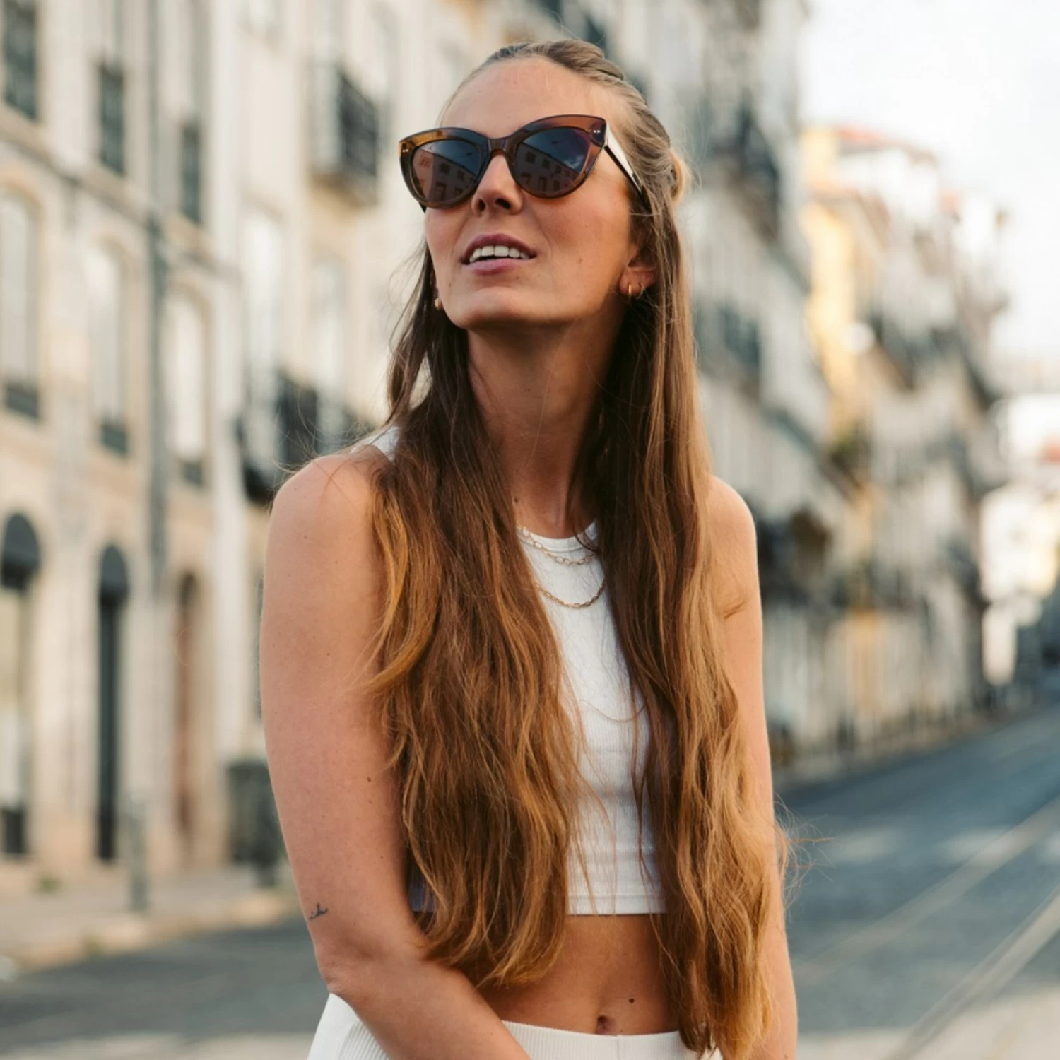 Du liebst elegante Fashion-Highlights? Dann ist unsere Sonnenbrille Sofia Transparent Caramel Brown das perfekte Sonnen-Accessoire für dich! Dabei überzeugt dieses Brillenmodell neben seiner erstklassigen Qualität aus hochwertigem Acetat vor allem in puncto Design. Der formschöne, markante Rahmen glänzt durch seine besondere Farbgestaltung in marmorierten, warmen Brauntönen, wodurch die extravagante Formgebung dieser Brille besonders in Szene gesetzt wird. In dunkelbraun gehaltene CR39-Premiumlinsen komplettieren den Look der Sofia und machen diese Sonnenbrille zu einem absoluten Must-Have für alle Fashion-Lover! Die Linsen entsprechen dem höchsten Qualitätsstandard der EU-Kategorie 3 Norm und bieten deinen Augen einen optimalen UV400 Schutz. Du suchst ein Sonnen-Accessoire zum Verlieben? Dann ist die Sofia Transparent Caramel Brown die perfekte Sonnenbrille für dich!