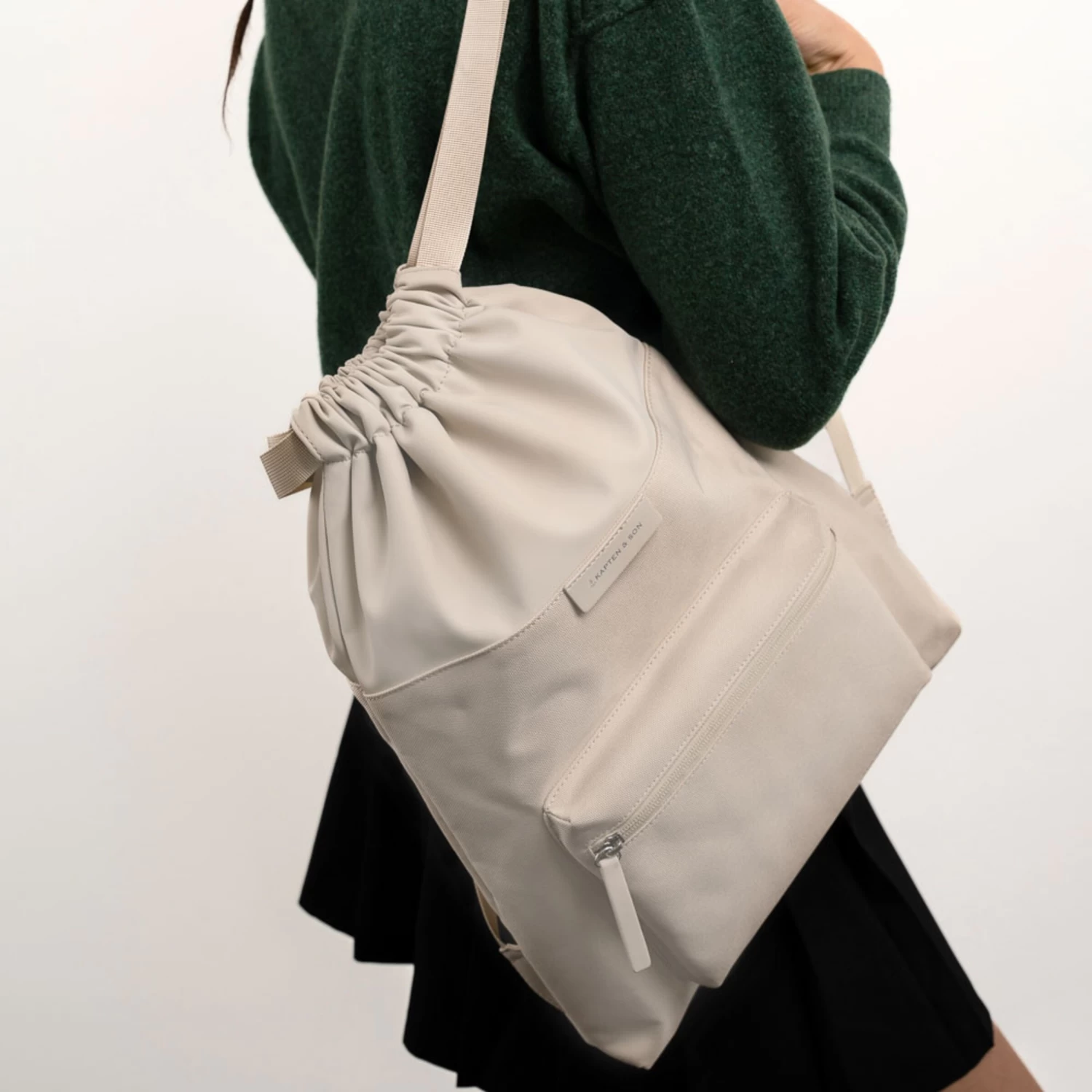 Next Level Gym Bag Aesthetics: Der Storberg Sandstone vereint cooles Design mit dem klassischen Look des Bergen. Im Hauptfach findest du mehr als 6 Liter Stauraum, in die locker ein Collegeblock im DIN A 4-Format passt, sowie eine Innentasche mit Reißverschluss für kleinere Daily Essentials, wie Kopfhörer, Schlüssel & Co. Die finden übrigens auch in der Fronttasche mit Reißverschluss einen Platz, wenn du sie noch schneller zur Hand haben möchtest. Der hochwertige Materialmix aus recyceltem PET und veganem Tech-Material macht diesen außergewöhnlichen Backpack-Style wasserabweisend, robust und pflegeleicht. Die extrabreiten, größenverstellbaren Träger garantieren ein leichtes und angenehmes Tragegefühl. Dank der Farbgebung in cleanem Sandstone kannst du den Storberg vielseitig kombinieren und so ein lässiges Statement setzen – was auch immer du vorhast und egal, wo du bist.