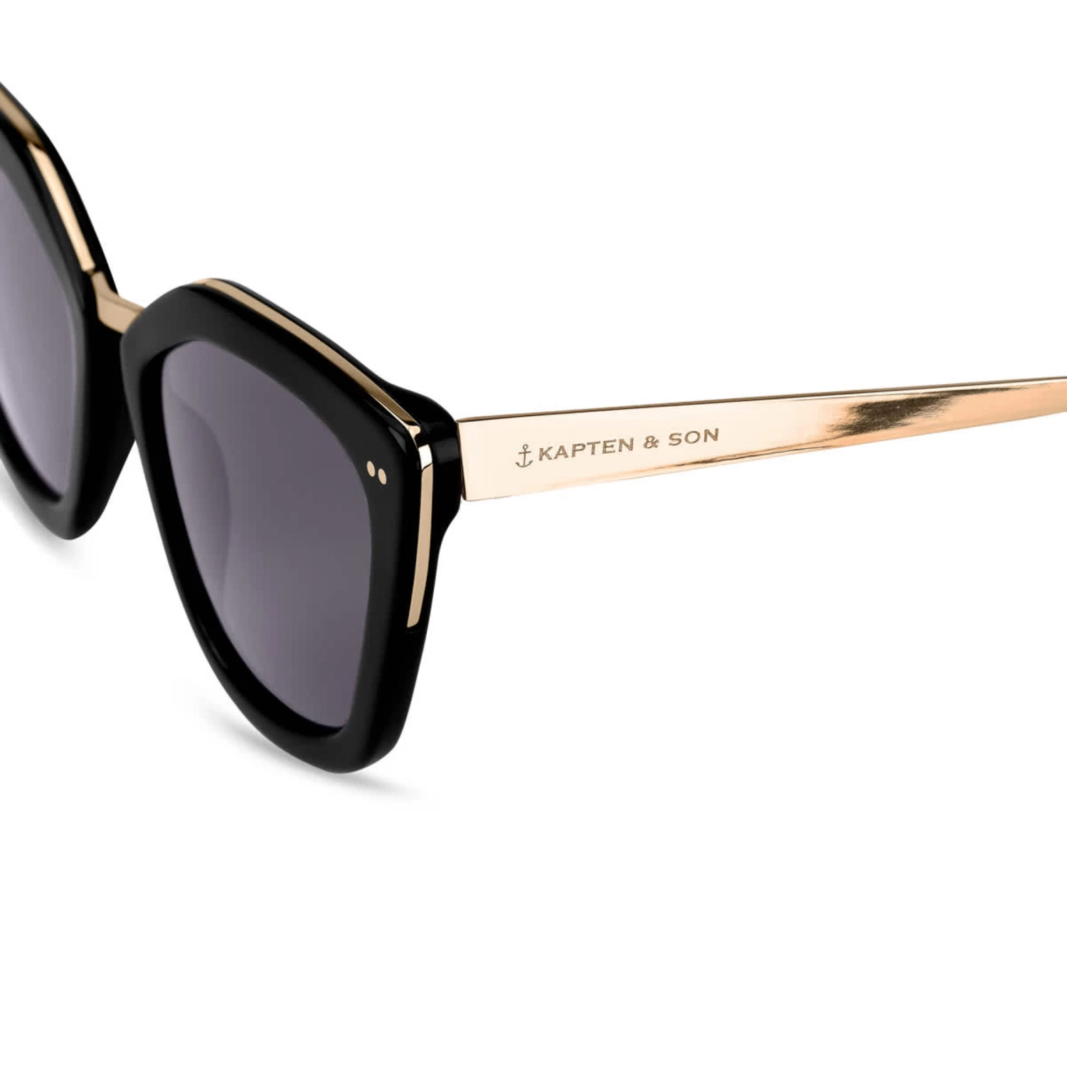 All eyes on you – mit unserer Sonnenbrille Sydney All Black sind alle Augen auf dich gerichtet! Der extravagante Cat-Eye-Look macht dieses Brillenmodell zu einem wahren Eye-Catcher. Der qualitativ hochwertige Rahmen ist aus hochwertigem Bio-Acetat und extraleichtem Edelstahl gefertigt und besticht neben seiner erstklassigen Qualität und besonderen Formgebung auch durch die elegante Farbwahl in Schwarz und edlem Gold. Die perfekt auf das Design abgestimmten, schwarzen Premiumlinsen aus Nylon vervollständigen den Look. Sie entsprechen der EU-Kategorie 3 Norm und bieten deinen Augen einen zuverlässigen UV400- Schutz. Du bist auf der Suche nach einem neuen It-Piece fĂĽr deine Sonnenbrillen-Sammlung? Mit unserer groĂźen Sonnenbrille Sydney All Black setzt du ein Statement!