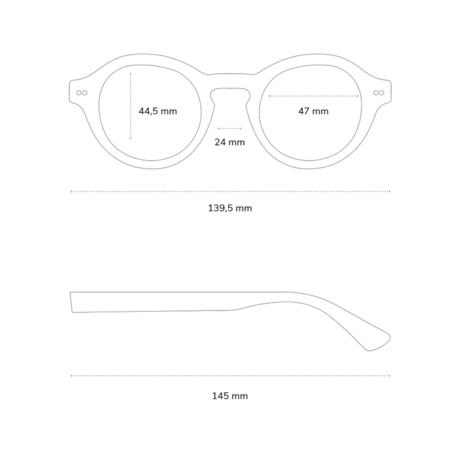 - Rahmenbreite: 139,5mm, Bügellänge: 145mm, Glasbreite: 47mm, Glashöhe: 44,5mm