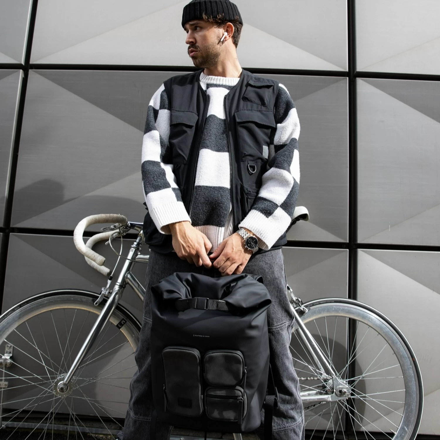 Kann ein Rucksack zu viele Taschen haben? Klare Antwort: nein! Unser Tonsberg All Black ist der Beweis dafĂĽr. Vier AuĂźenfächer mit ReiĂźverschluss, eine auĂźenliegende 16″-Laptoptasche (natĂĽrlich ebenfalls mit ReiĂźverschluss) und vier weitere gefĂĽtterte Innentaschen sprechen fĂĽr sich. So kannst du Struktur in deine Essentials bringen und hast sie im Handumdrehen griffbereit. Den Stauraum des Tonsberg All Black kannst du von 21 Liter auf bis zu 26 Liter erweitern. Gepolsterte Träger sowie ein Brustgurt sorgen dafĂĽr, dass der Rucksack trotzdem nie unbequem wird – egal, wie schwer der Inhalt ist. Mithilfe einer Befestigung auf der RĂĽckseite lässt sich der Tonsberg auĂźerdem ganz einfach an deinem Koffer anbringen und ist so auch eine perfekte Begleitung auf längeren Reisen. Die hochwertigen Materialien sind nicht nur frei von PVC und PFC, sondern wasserabweisend und robust – damit dein Gepäck optimal geschĂĽtzt ist und du deinen Tonsberg möglichst lange mit dir tragen kannst. Apropos Schutz: Auf der Vorderseite des Rucksacks findest du eine Vorrichtung, an der du ein Fahrradlicht befestigen kannst, um auch im Dunkeln sicher durch die City zu kommen. Unser Fazit: Der Tonsberg All Black ist ein absolutes Organisationstalent, ein auĂźergewöhnlicher Blickfang und gehört auf den RĂĽcken eines jeden Backpack-Lovers!