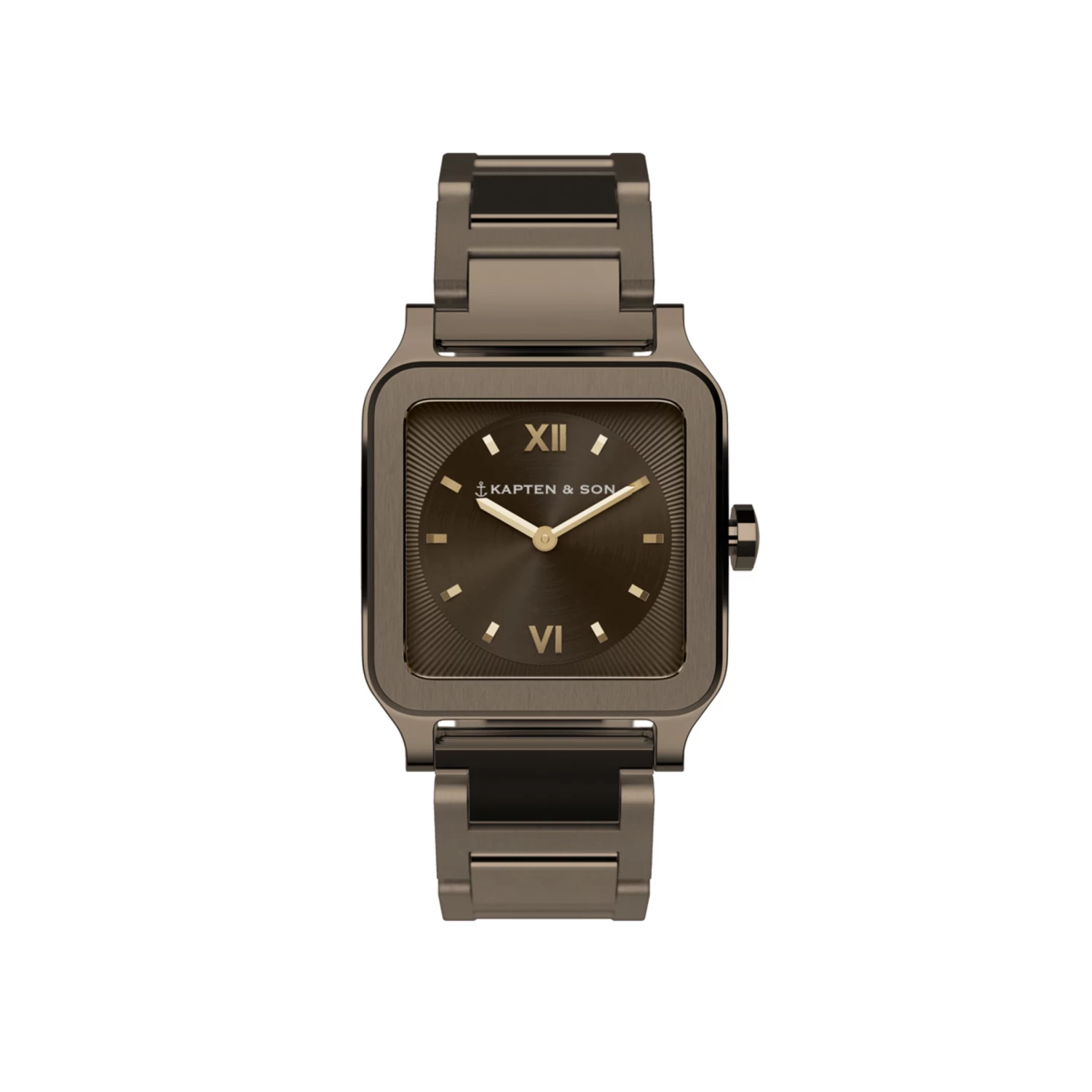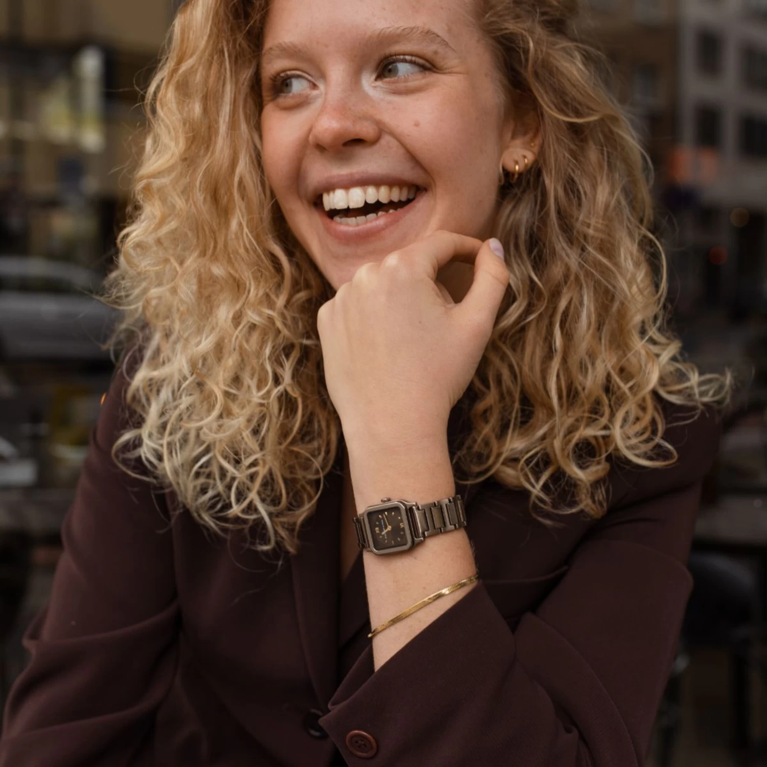 Gold, Silber oder Bicolor – du kannst dich einfach nicht entscheiden? Dann ist unsere Tresor Brown Bold Steel die perfekte Wahl für dich! Vom Armband bis zum Zifferblatt changiert diese Uhr in warmen Brauntönen, passt zu jedem Haut- und Haarton und lässt sich ganz easy zu all deinen Looks kombinieren. Das Armband ist aus 100% recyceltem 316L Edelstahl gefertigt und lässt sich dank des Butterfly-Verschlusses leicht öffnen und schließen. Mit seinem zart gerillten Sonnenstrahlenschliff sowie dem 3D-Effekt ist das extravagante Zifferblatt ein absoluter Eyecatcher. Das Herzstück bildet das Uhrwerk des Schweizer Herstellers Ronda, das für die Langlebigkeit dieser außergewöhnlichen Uhr sorgt. Zeit für etwas Ausgefallenes? Dann liegst du mit der Tresor Brown Bold Steel absolut richtig.