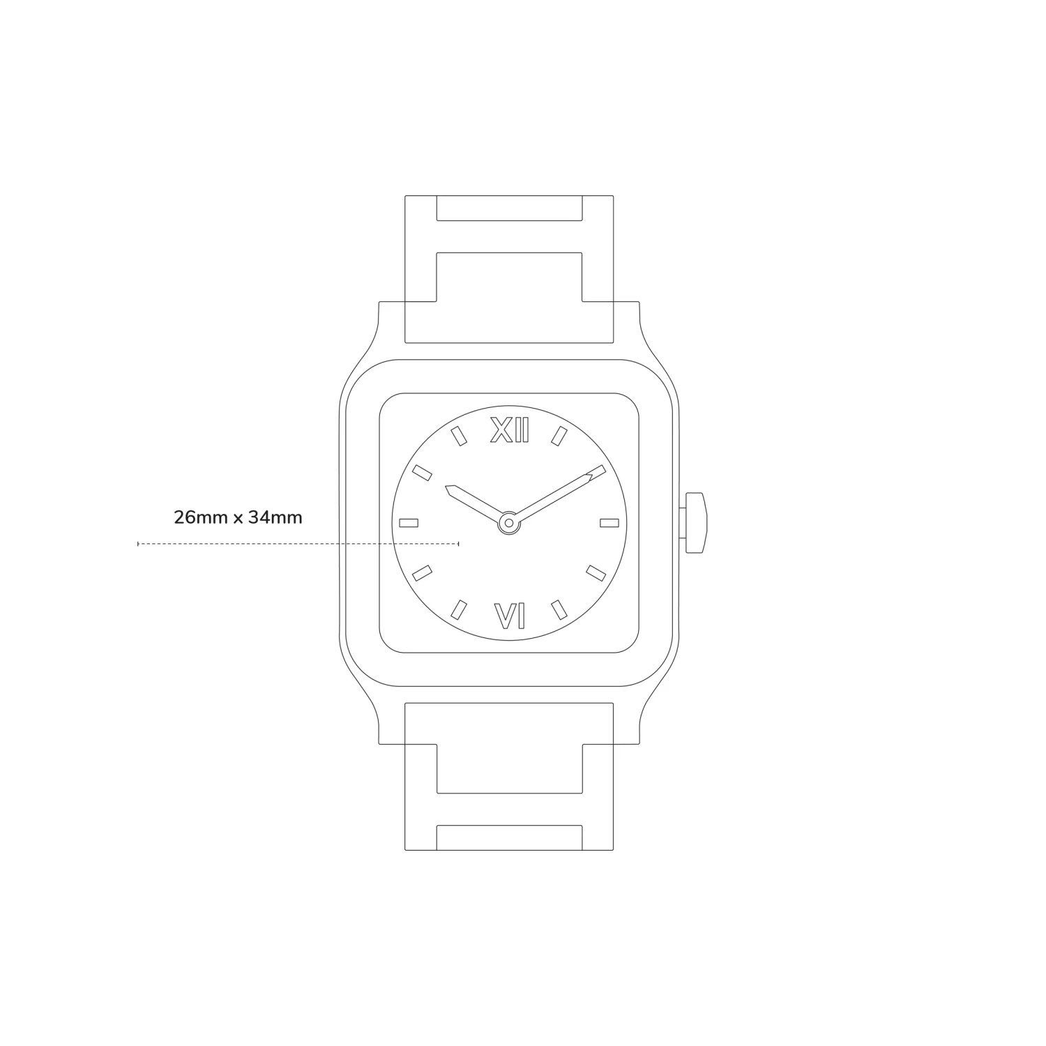 - markant elegante Uhr mit den MaĂźen 26 x 34 mm