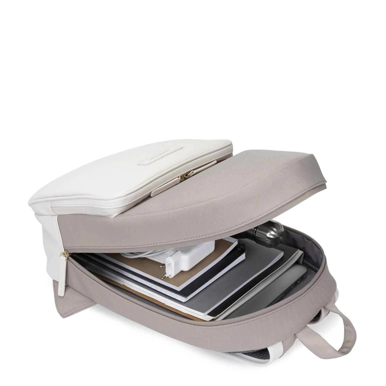 Ein stylischer Look fĂĽr deinen Alltag? Mit dem Vardo Muted Clay gehört dir ein Rucksack, der nicht nur durch seine easy Handhabung ĂĽberzeugt, sondern auch mit seinem modernen Design! Gefertigt aus wasserabweisendem, veganem Tech-Material und recyceltem PET schĂĽtzt dieses robuste Modell deine Utensilien perfekt bei kleinen Regenschauern, sogar der ReiĂźverschluss ist wasserabweisend. Das qualitativ hochwertige Material ermöglicht es dir auĂźerdem, kleine Gebrauchsspuren des Alltags ganz einfach zu entfernen, sodass dir der Look deines Vardos lange Zeit Freude bereiten kann – perfekt also fĂĽr deinen Weg zur Schule, Universität oder auch ins BĂĽro! Im Innenraum des Rucksacks findest du genĂĽgend Platz fĂĽr BĂĽcher, DINA4 Blöcke oder andere Dinge des Alltags und das extra gepolsterte Laptopfach bietet eine optimale Möglichkeit, sogar dein Notebook sicher zu verstauen. AuĂźerdem findest du hier ein weiteres kleines Fach mit ReiĂźverschluss, welches sich perfekt fĂĽr die Aufbewahrung von Kleinst-Utensilien, wie deinem Portemonnaie oder Smartphone, eignet. Eine weitere Möglichkeit dein Hab und Gut zu separieren findest du an der AuĂźenseite des Vardos – auch in diesem Fach hast du Platz, kleine Dinge des Alltags zu verstauen. Ăśbrigens: solltest du einmal voll bepackt sein, hilft dir die weiche Polsterung an den Trageriemen und der RĂĽckseite, die dir einen bequemen Tragekomfort bietet. Ăśberzeugt? Mit unserem Vardo Muted Clay gehört dir ein Rucksack-Modell der Extraklasse, dass dir dabei hilft dich perfekt in deinem Alltag zu organisieren und zudem auch noch optisch ein wahrer Hingucker ist!
