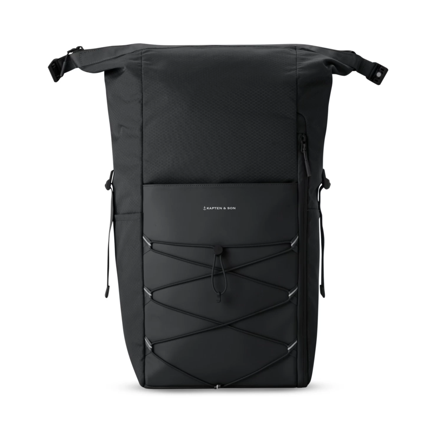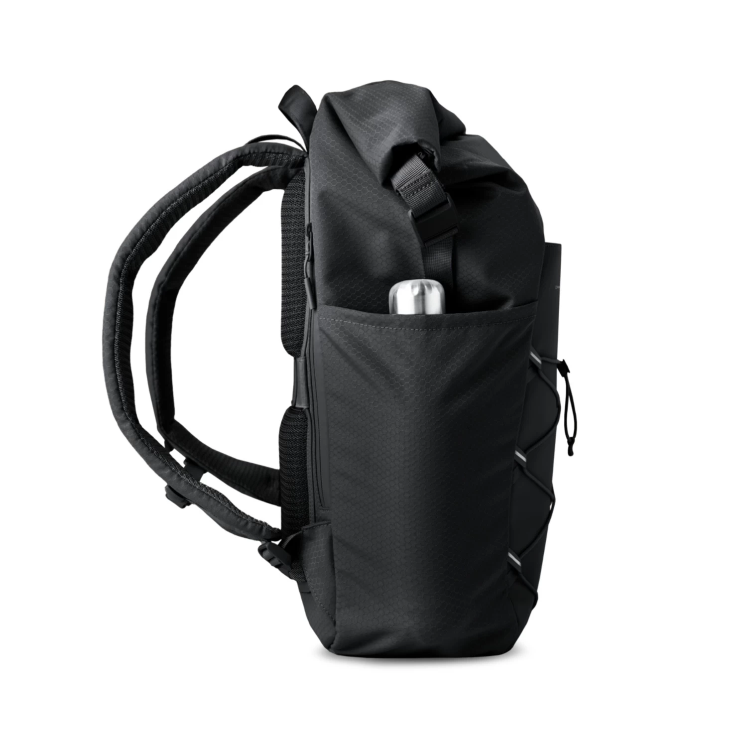 Your 25 hour backpack: Dein Tag hat nie genügend Stunden? Dafür hat der Yoho All Black garantiert mehr als genügend Platz! Und zwar für alles, was du unterwegs brauchst. Der Stauraum lässt sich von 24 auf bis zu 30 Liter erweitern. Dank des Rolltops lässt sich der Backpack ganz easy öffnen beziehungsweise schließen und wird mit zwei magnetischen Schnallen fixiert. Ein zusätzlicher Reißverschluss sorgt für extra Sicherheit. Im Inneren findest du unter anderem ein 14 Zoll-Laptopfach und weitere, teilweise mit Micro Fleece ausgekleidete Taschen, um deine Habseligkeiten geschützt zu verstauen. Außen befinden sich ein Anti-Diebstahlfach, ein extra großes Seitenfach sowie eine seitliche Flaschenhalterung. Mithilfe des elastischen Bands auf der Vorderseite kannst du Jacke, Pullover oder Ähnliches transportieren. Der Yoho ist durch unser Ripstop-Material sowie spezielle Reißverschlüsse extrem wasserabweisend und robust. Gepolsterte Träger und Rückseite sowie der Brustgurt sorgen dafür, dass du den Rucksack auch über längere Zeit bequem tragen kannst. Mit seiner vielseitigen Funktionalität und dem monochromen Look inklusive matchender Hardware in lässigem Schwarz darf der Yoho All Black auf keinem Rücken fehlen.