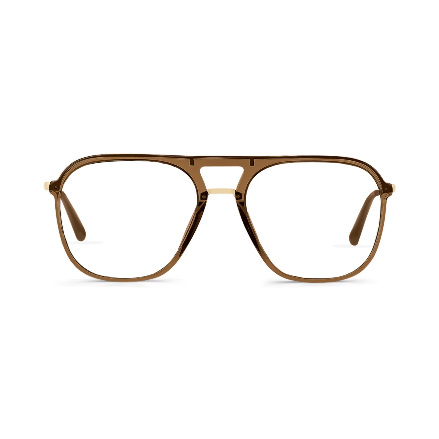 Mit unserer Zurich Transparent Caramel wird der beliebte Stil der Piloten-Brille neu interpretiert! Der markante Rahmen in transparentem Karamellbraun ist aus hochwertigem Acetat gefertigt und gibt dieser Brille mit ihrer ästhetischen Formgebung und dem doppelten Nasensteg ihren individuellen Look. Die Bügel sind aus extraleichtem Edelstahl in elegantem Gold gefertigt und trumpfen damit nicht nur optisch, sondern gewähren zugleich besonderen Tragekomfort. Du suchst nach einer Brille, deren Look alles andere als langweilig ist? Unsere Zurich Transparent Caramel schenkt dir den WOW-Effekt!